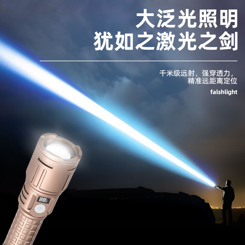 超长续航户外强光手电筒爆亮远射led野外照明充电式伸缩变焦厂家