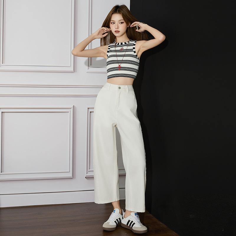 白色九分阔腿牛仔裤女2025夏季薄款高腰宽松小个子垂感直筒奶奶裤