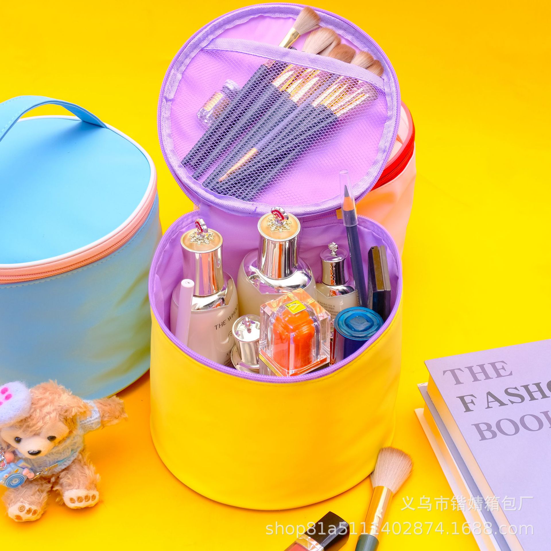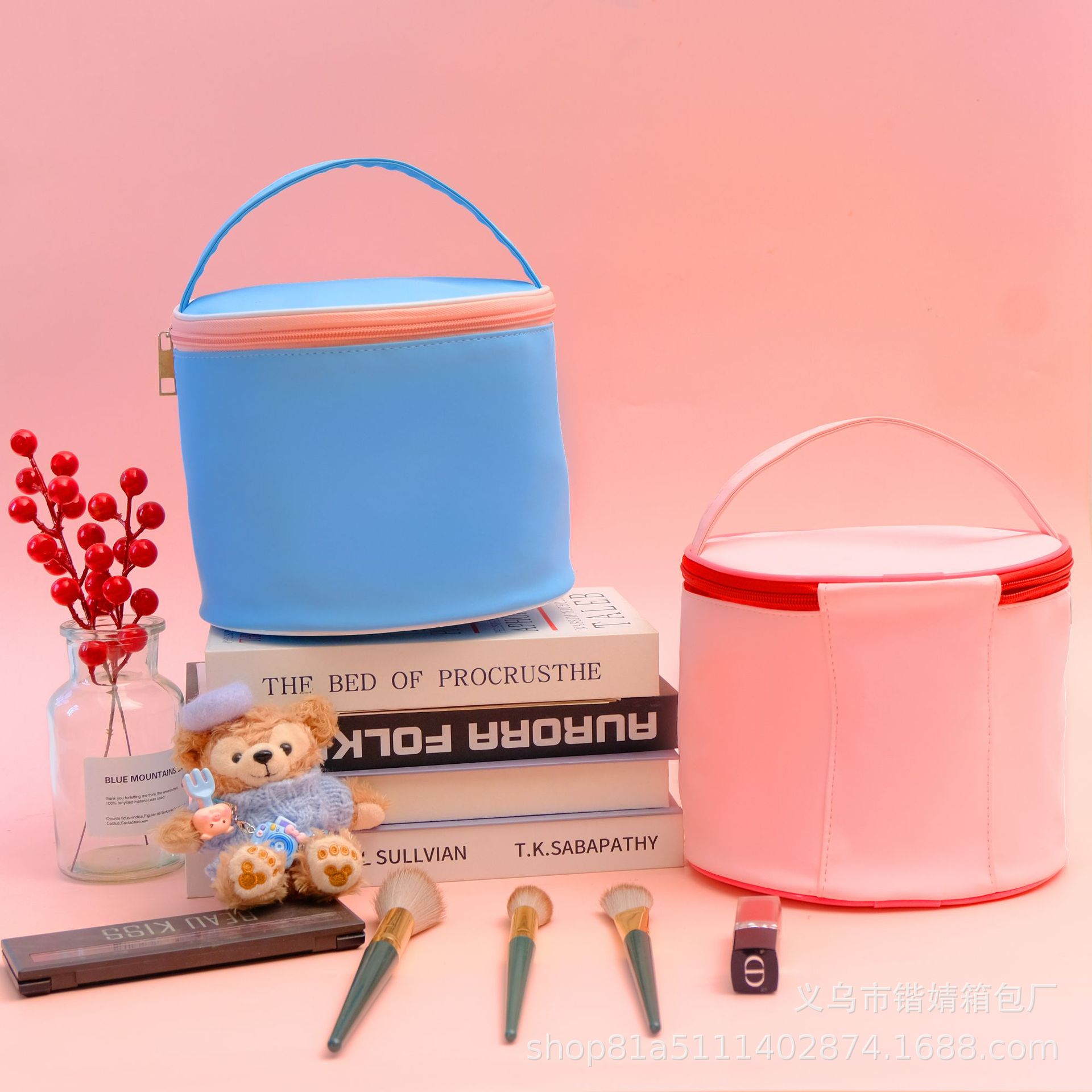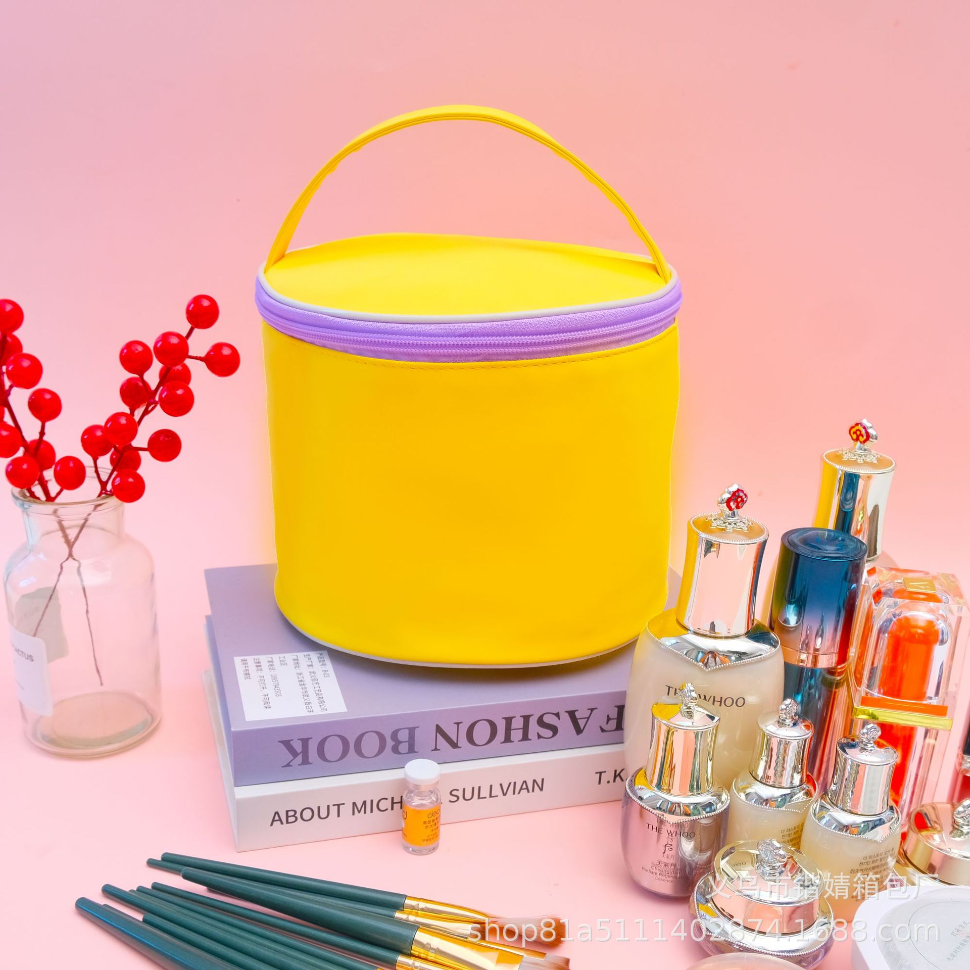 多巴胺配色圆桶包超大容量防水化妆包便携式手提水桶包