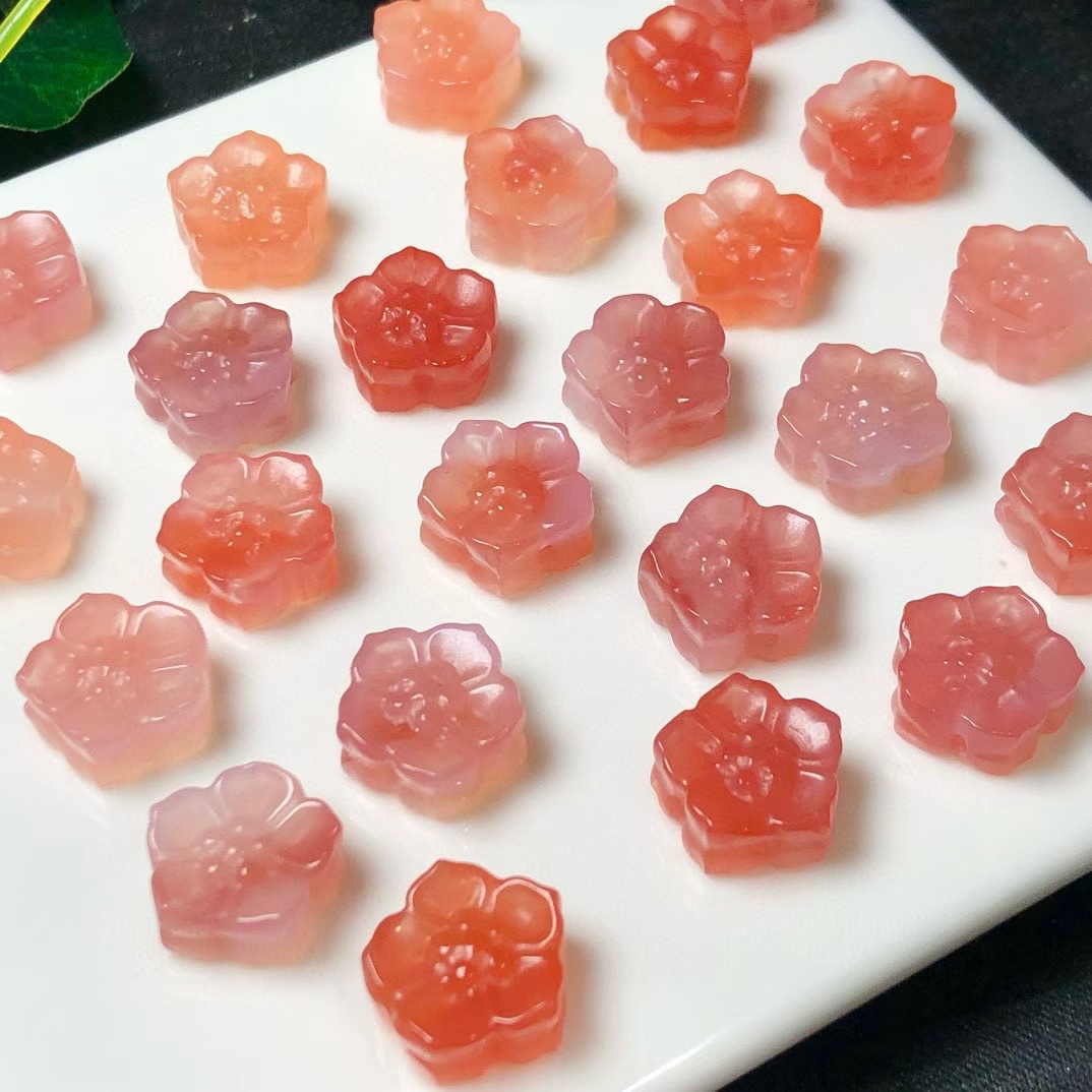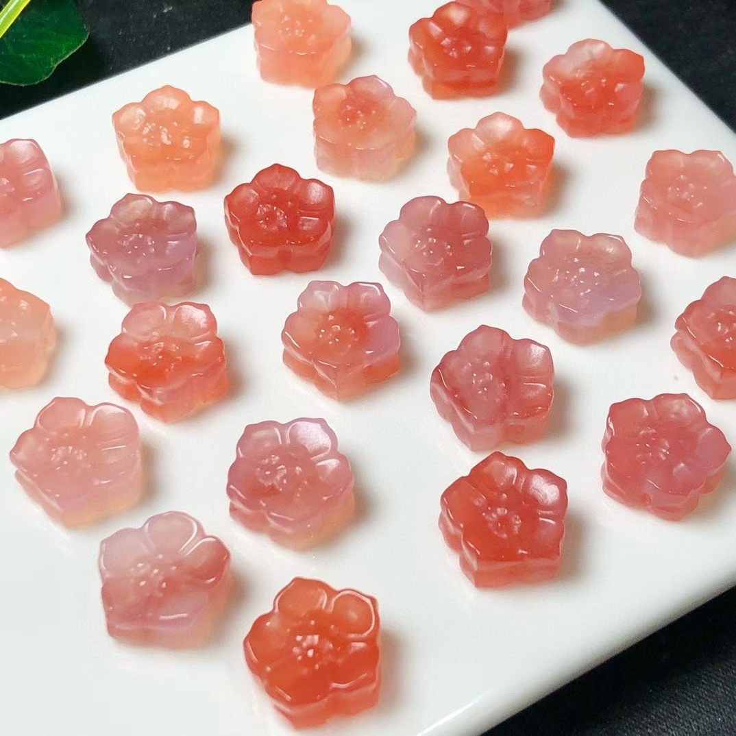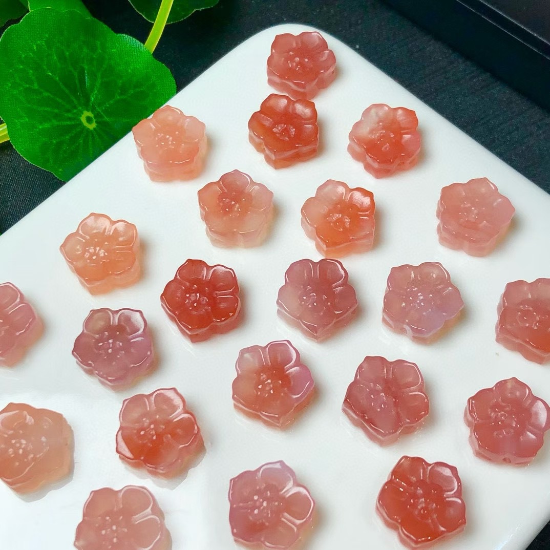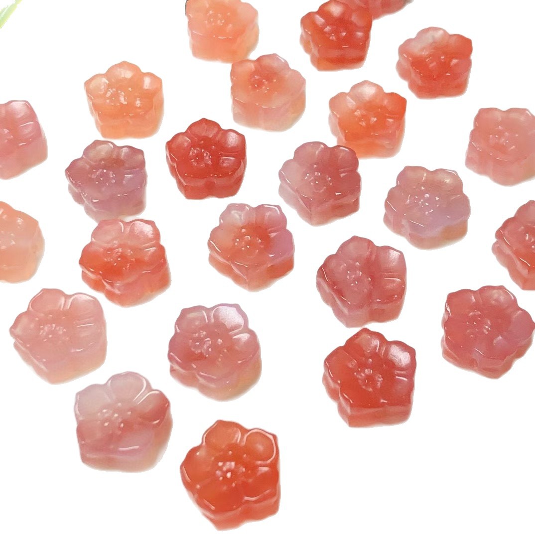 天然盐源玛瑙樱花配饰绯红玛瑙小花配珠diy通孔配件粉嫩可爱批发