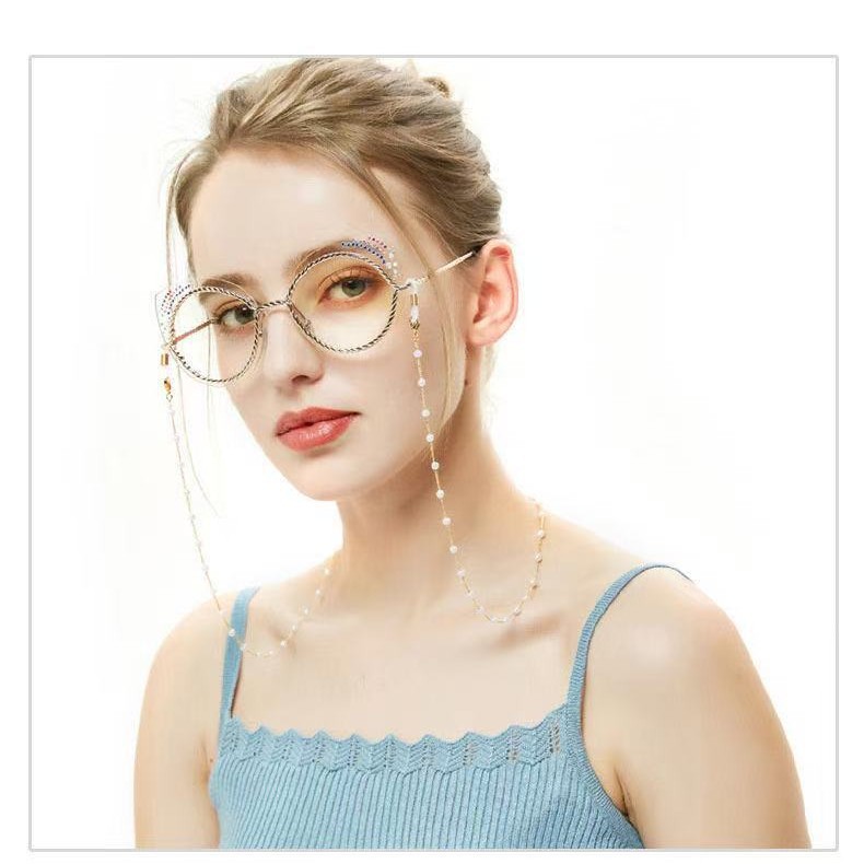 跨境饰品 时尚麻花珍珠圆珠链金属口罩链 简约眼镜链挂绳挂脖配饰