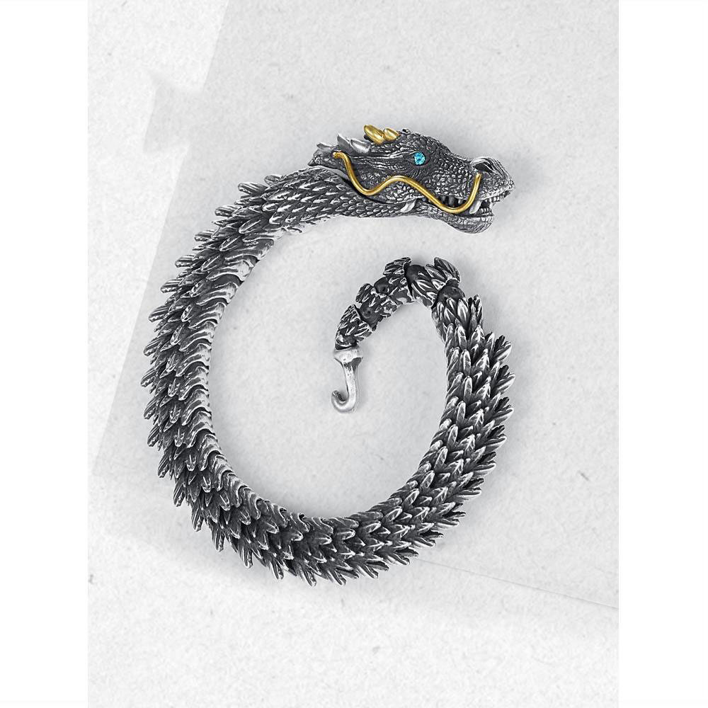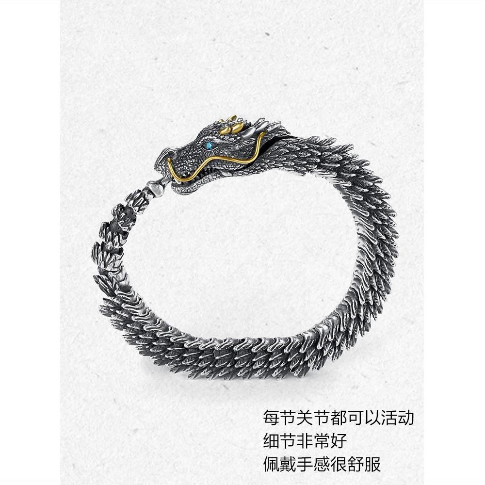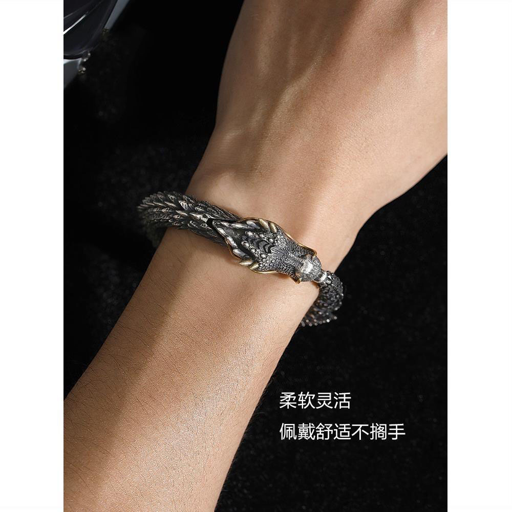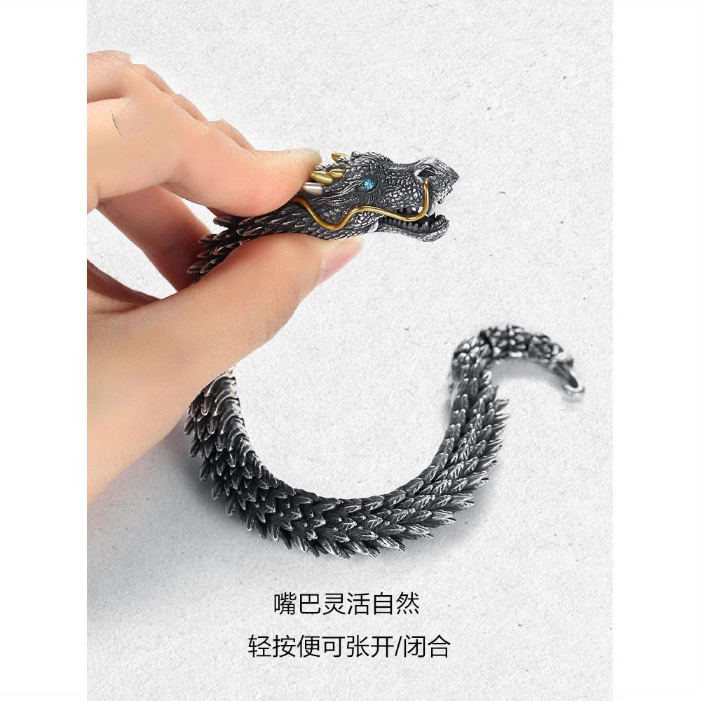 玉弘2025新款手工制作男士个性复古龙头手链霸气收藏级龙形朋克手