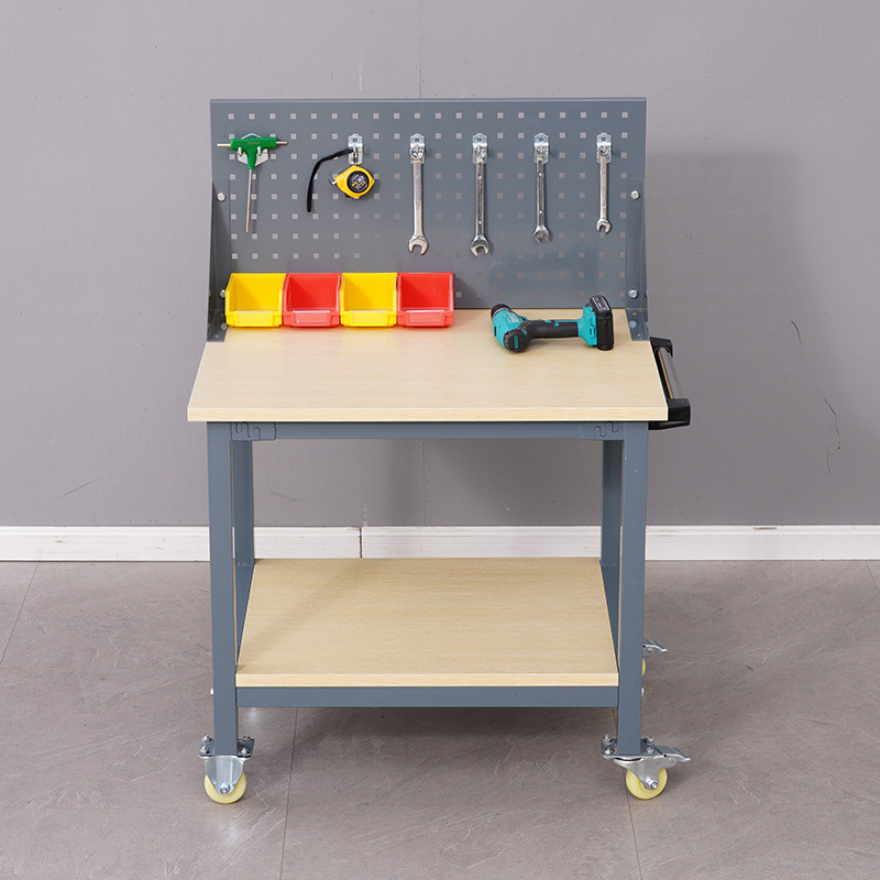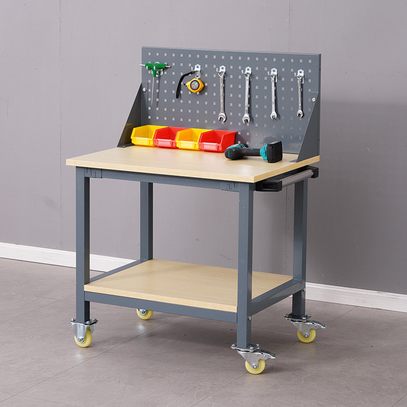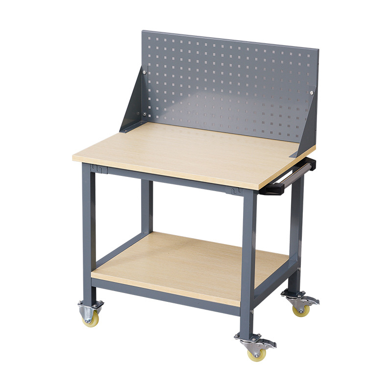 带轮双层橡木桌活动测试台可移动手推车打包双层周转防静电工作台