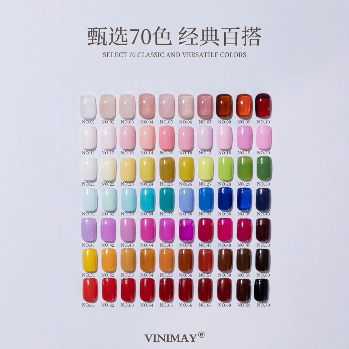 | 颜色 | 70色甲油胶任选一个色号留言备注 | 颜色 | 70色一套甲油胶下单70瓶赠送色卡 |