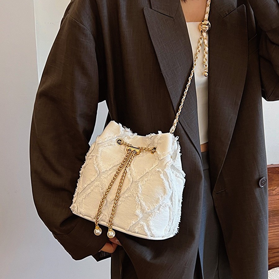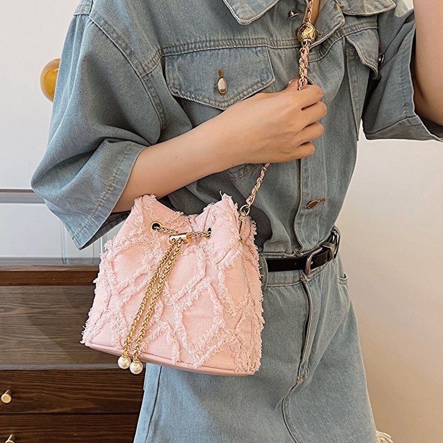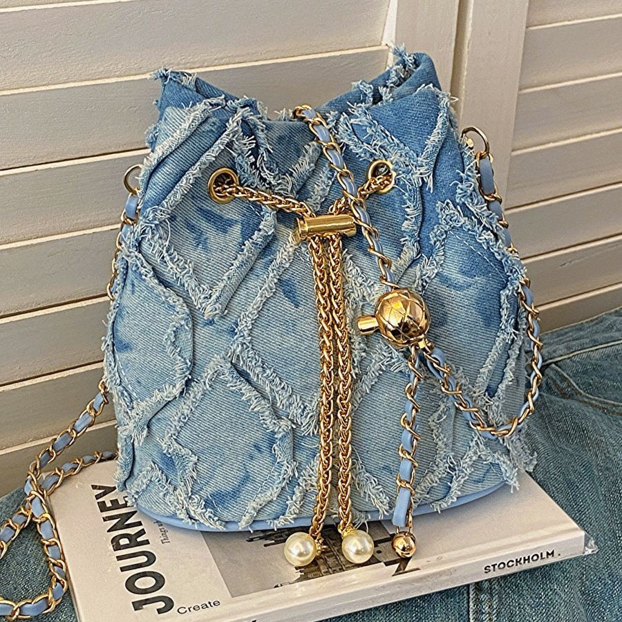 可定制LOGO2025新款夏季小众设计牛仔小包水桶包链条斜挎包单肩包