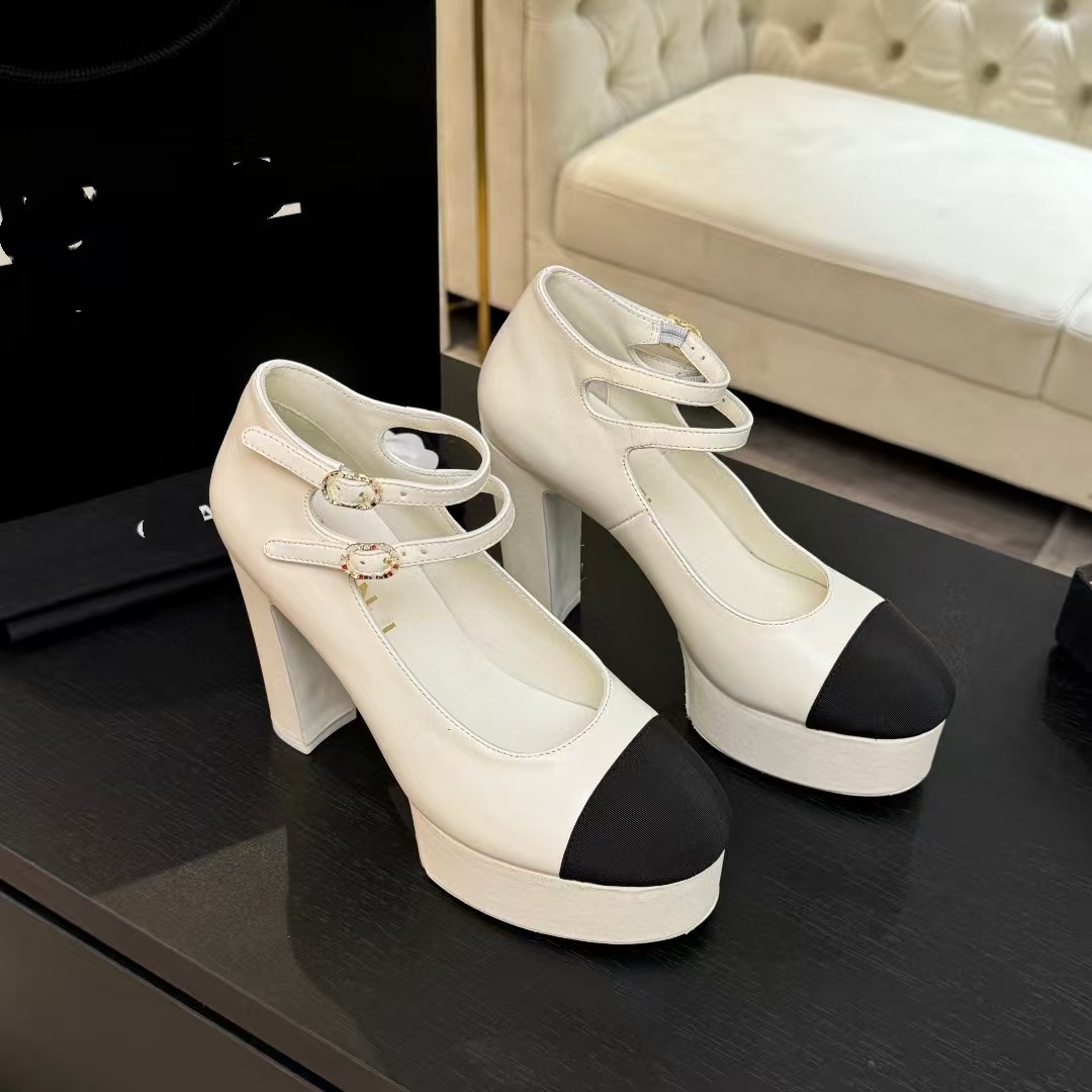 欧美跨境2025新款小香风时尚潮流粗跟高跟鞋拼色复古单鞋凉鞋女C