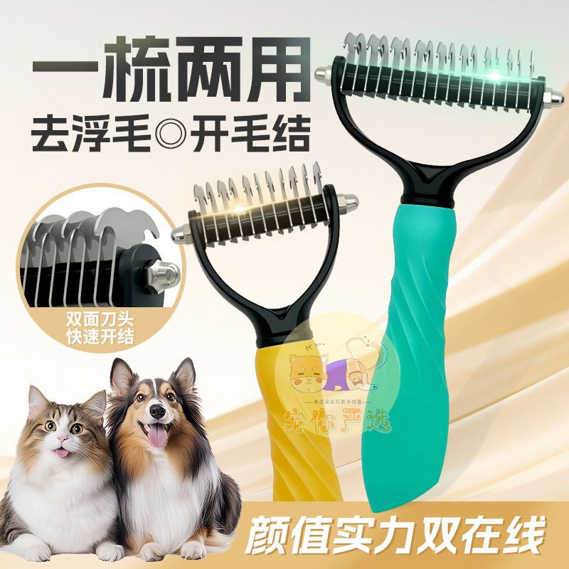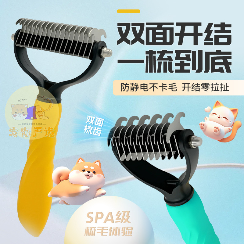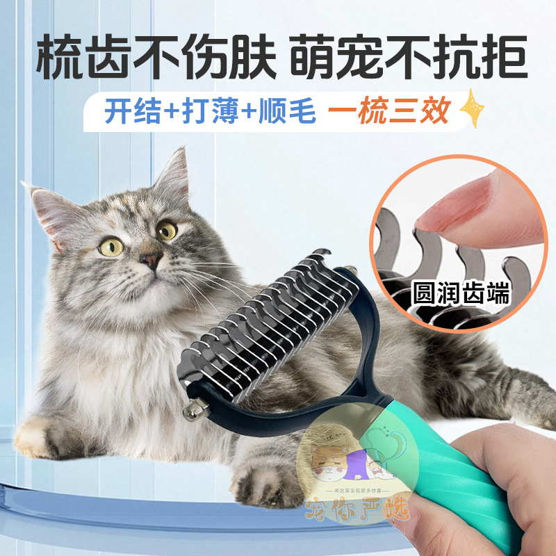 厂家直销宠物开结梳子长毛猫咪不锈钢双面打薄器狗去浮毛宠物用品