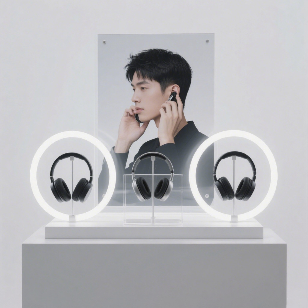 亚克力耳机展示架商品陈列架科技感设计款展示台蓝牙耳机展示柜子