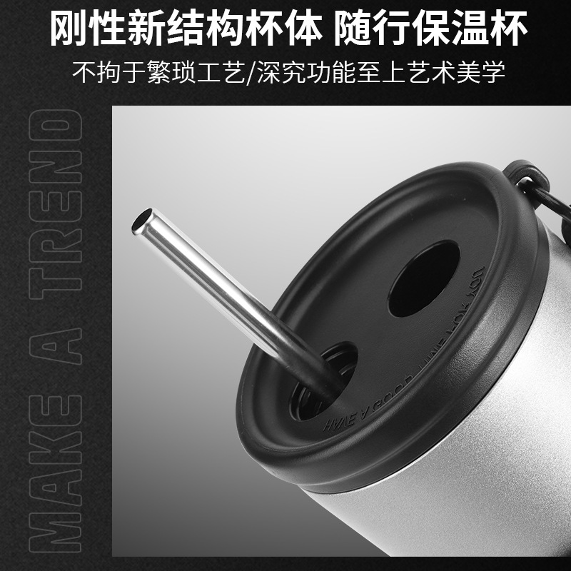 定制316不锈钢吸管保温杯车载随行保冷水杯带提绳大容量冰霸杯