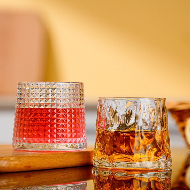 威士忌解压杯旋转玻璃杯转转酒吧批发陀螺洋酒水杯陀螺杯