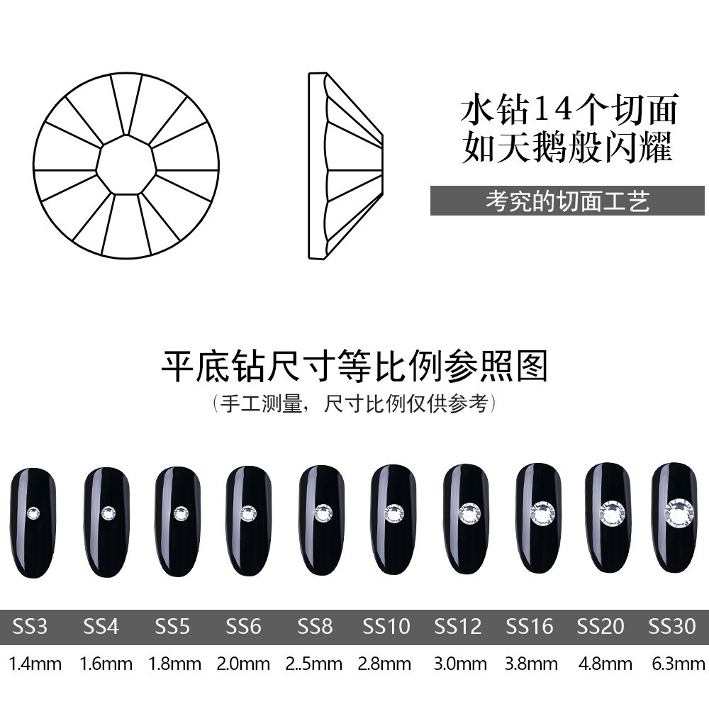 | 规格 | 大王扇透白平底圆钻ss3 1440颗 | 规格 | 大王扇透白平底圆钻ss4 1440颗 |