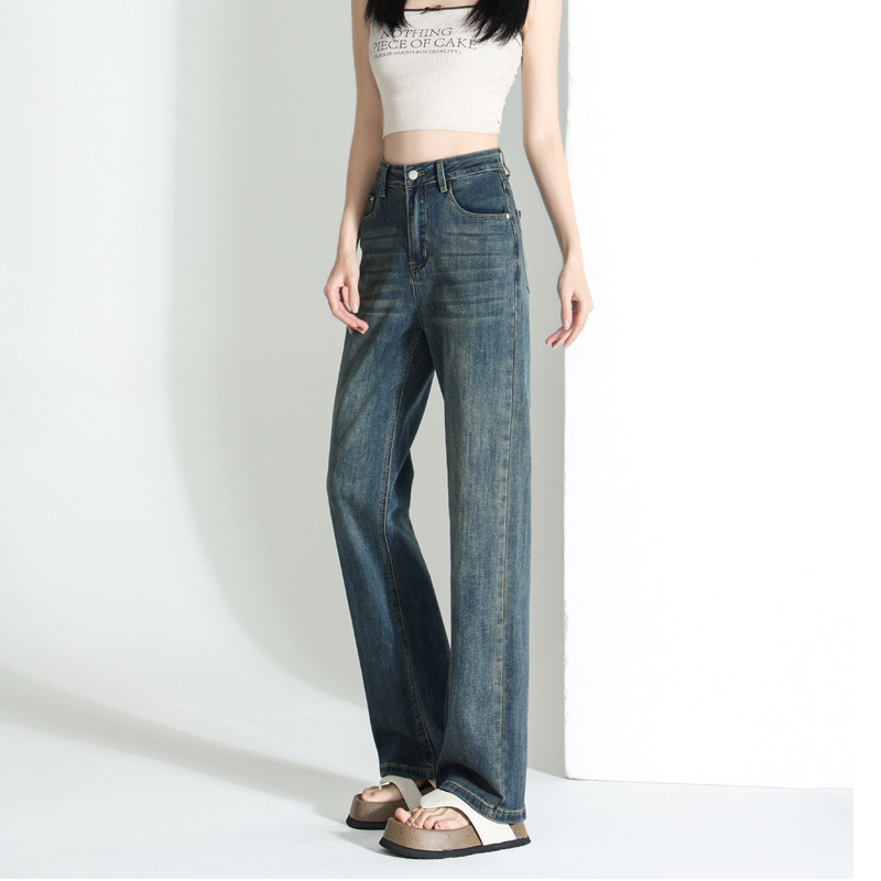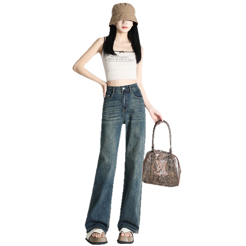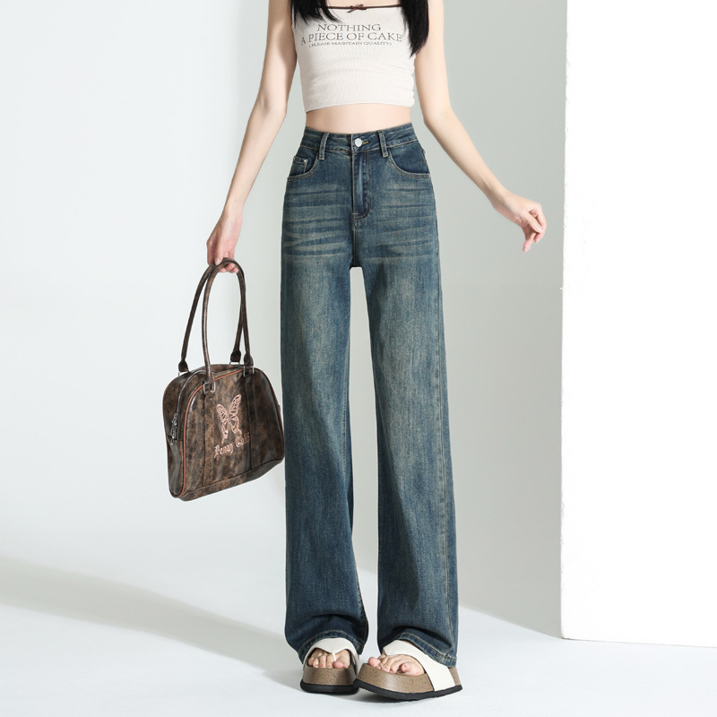 小个子专属窄版显瘦复古阔腿牛仔裤女宽松垂感百搭拖地2025年新款