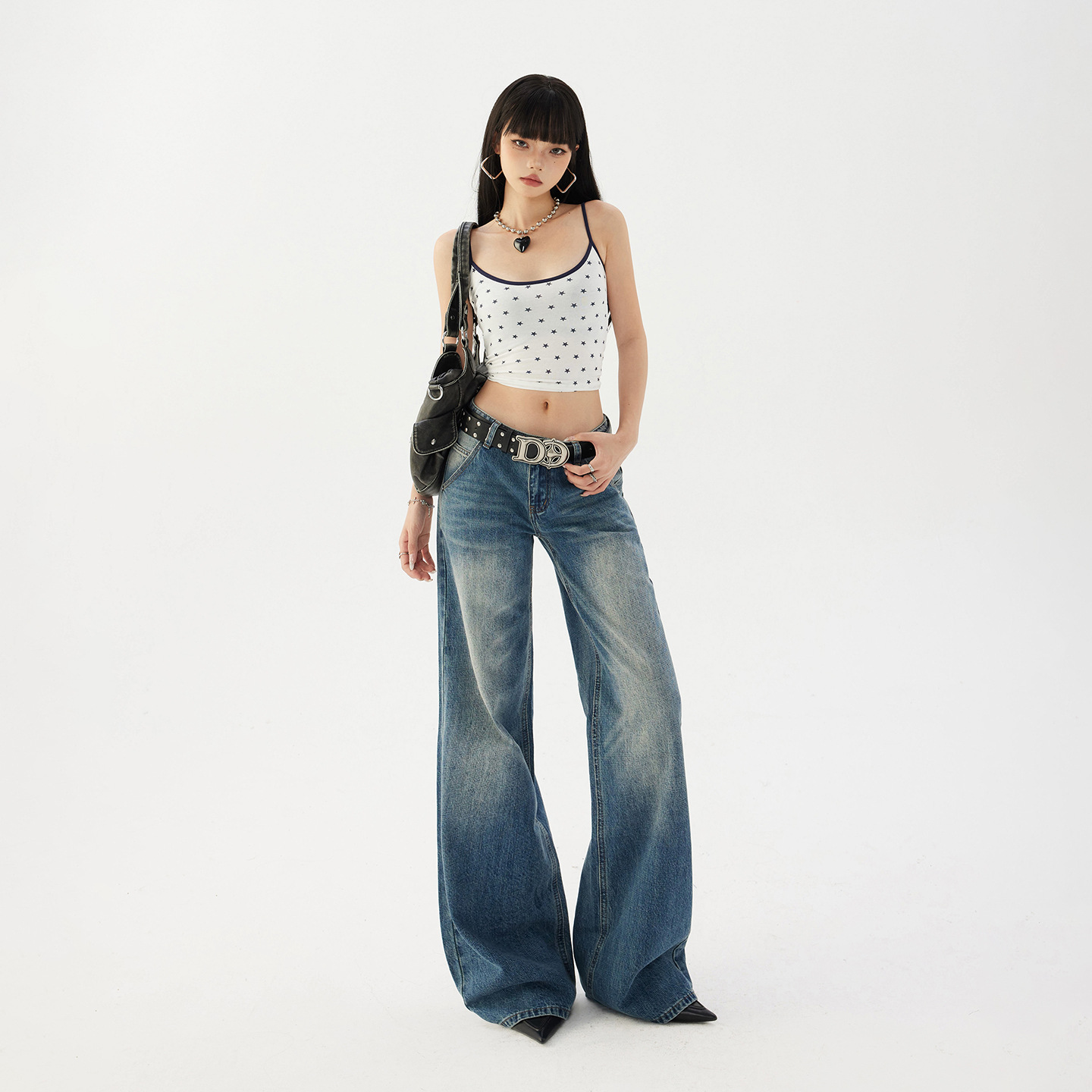 美式复古高腰宽松阔腿裤百搭低腰直筒牛仔裤女长裤加长