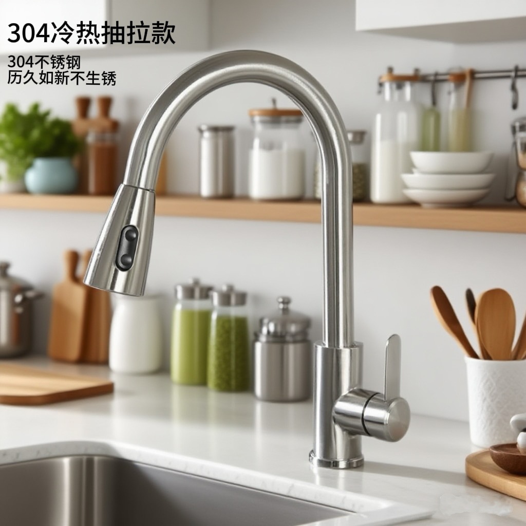 304不锈钢抽拉水龙头双温大湾水槽菜盆冷热洗碗池龙头开平洁具