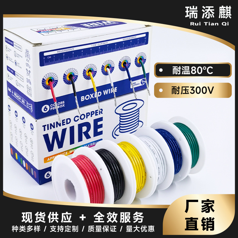 跨境彩色盒装电线6卷6色PVC电子线30-16AWG镀锡铜航模连接线OK线
