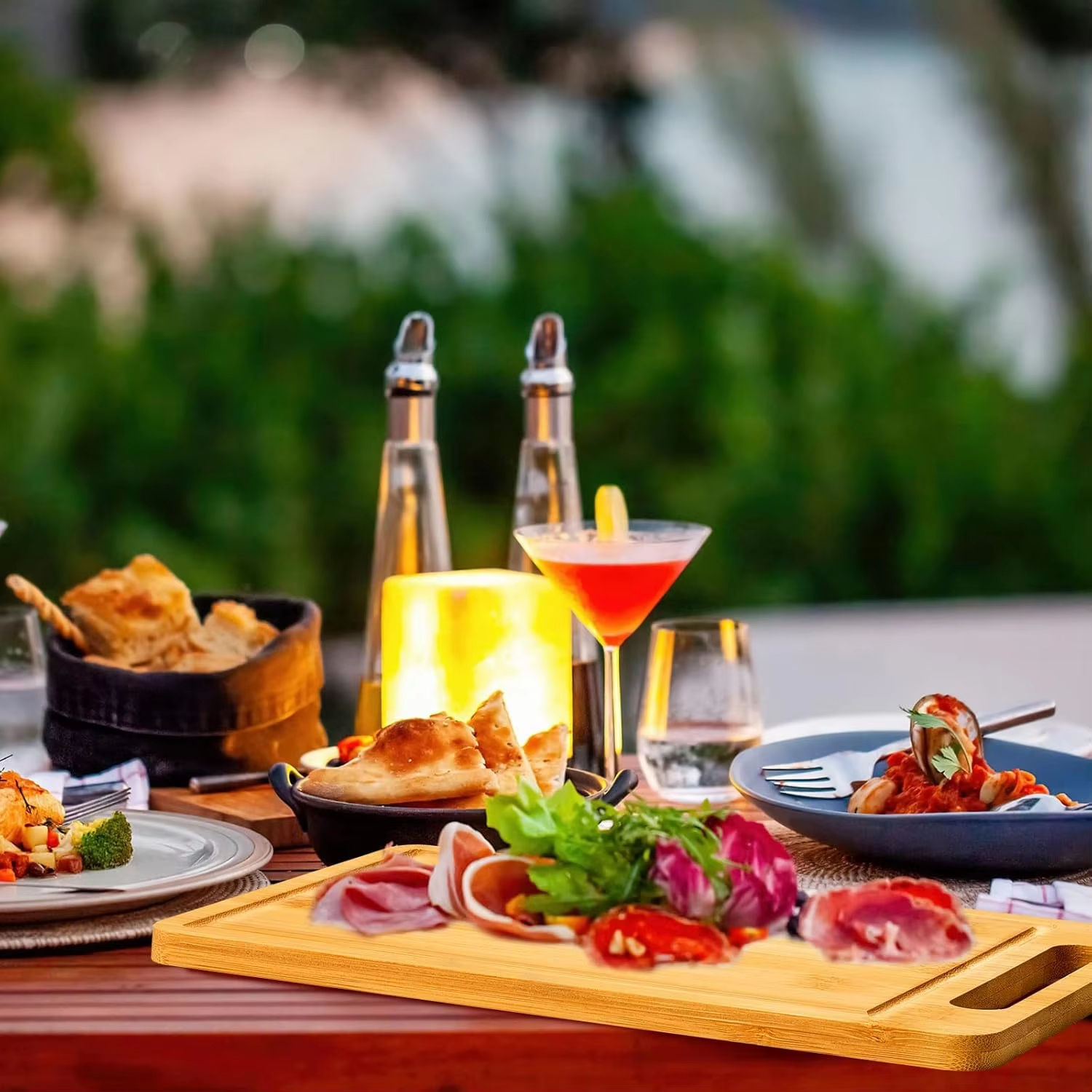 跨境竹木砧板家用挂墙沥水熟食板水槽板实木手柄切菜板竹制上菜板