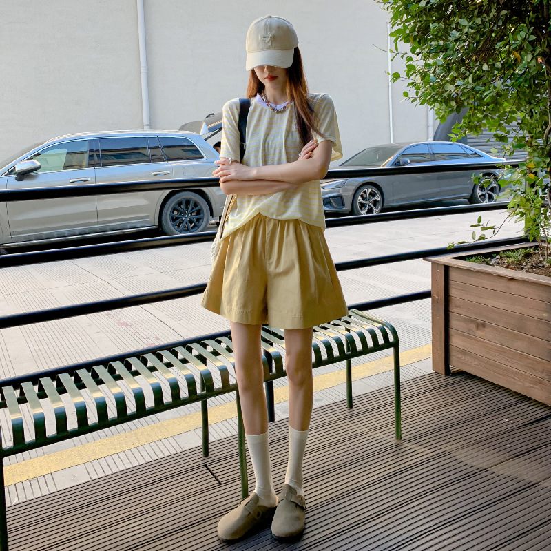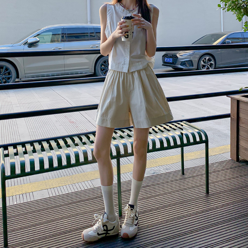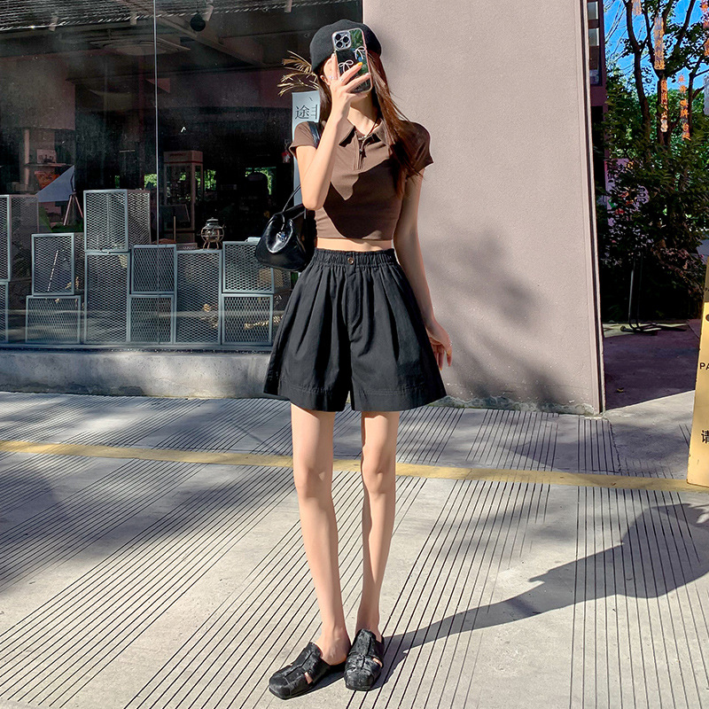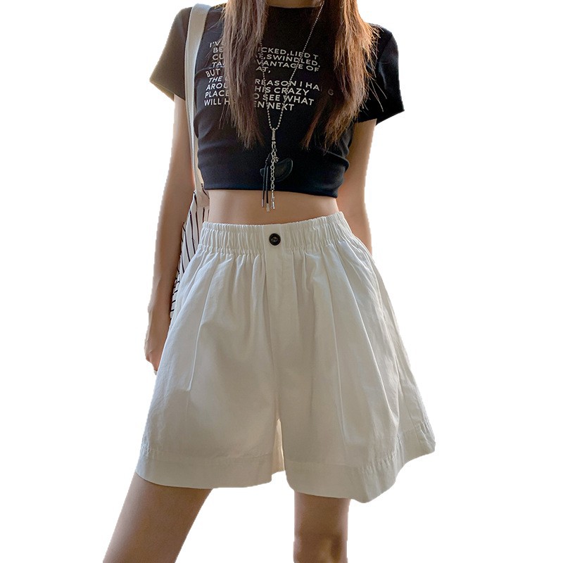白色松紧腰阔腿牛仔短裤女夏薄款高腰宽松显瘦韩版简约A字热裤女