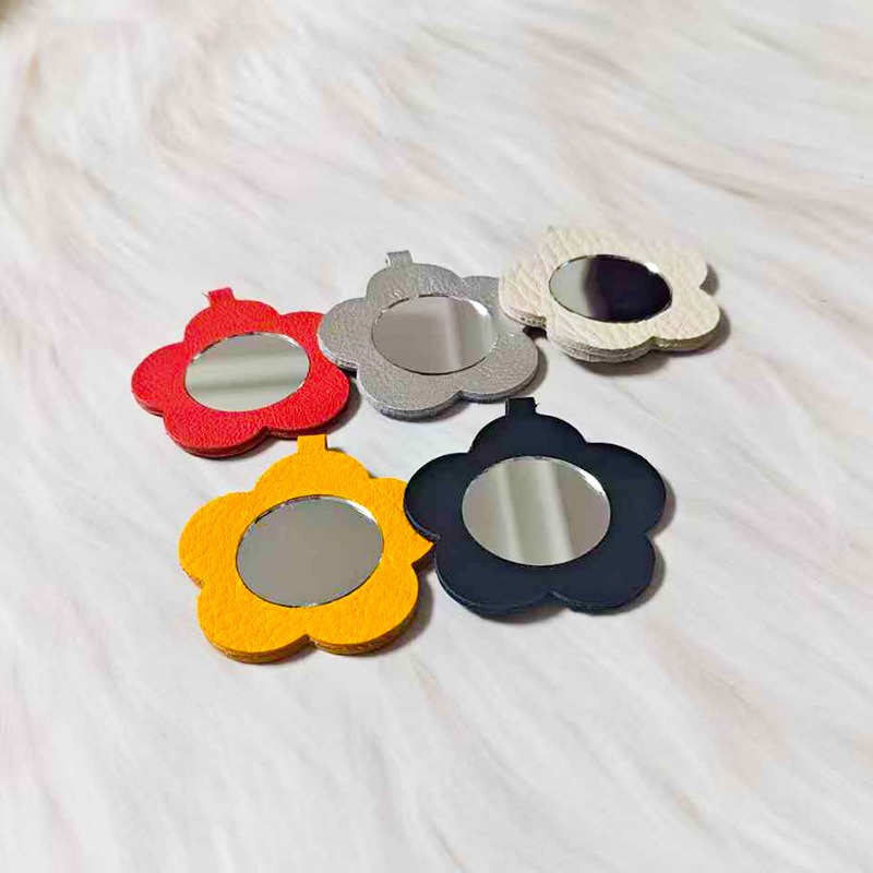简约创意设计小花朵牛皮小镜子吊坠花型规格多样精美箱包挂饰