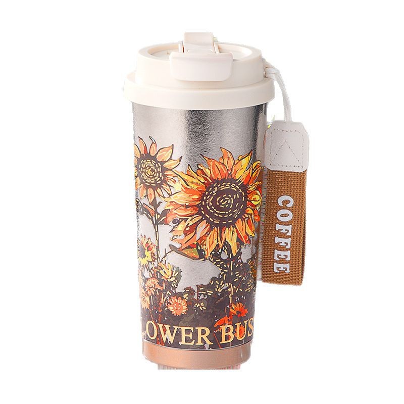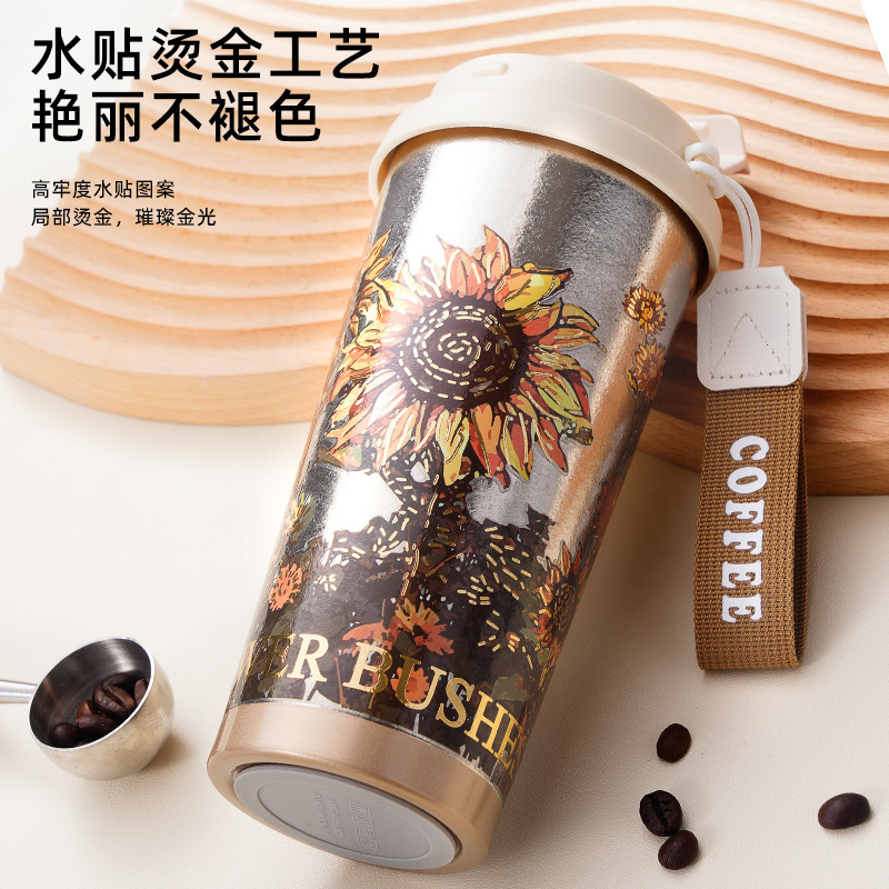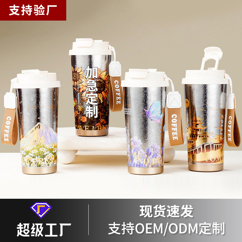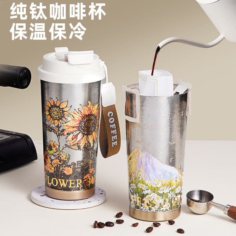 定制创意图案纯钛保温杯带提绳时尚简约咖啡杯户外便携可定制水杯