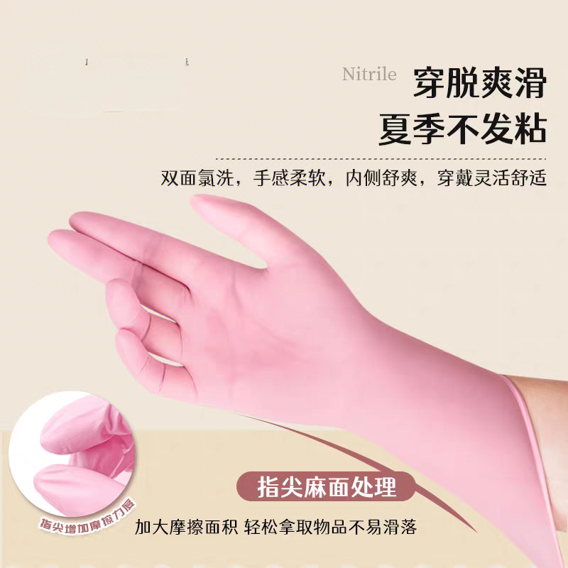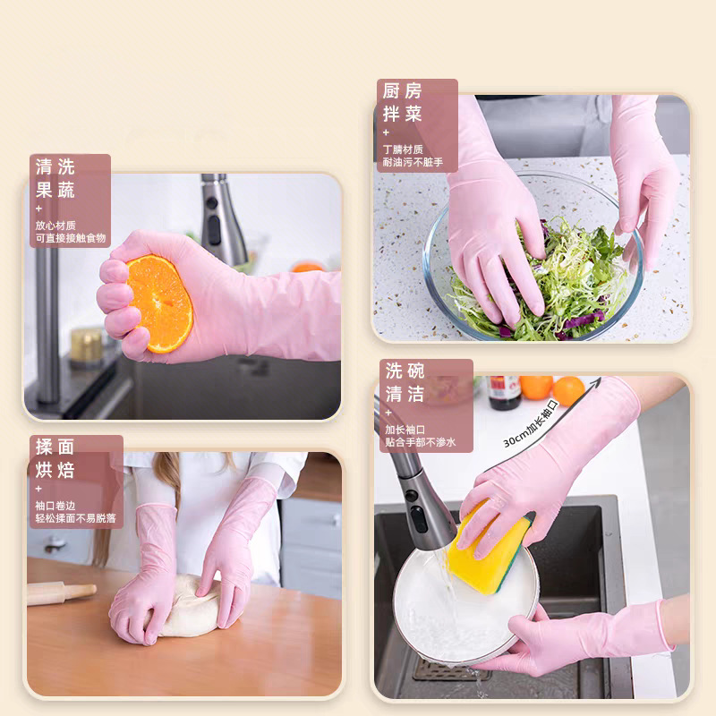 12寸粉色加长加厚耐用丁腈手套洗碗洗菜家务手套防水防油清洁手套
