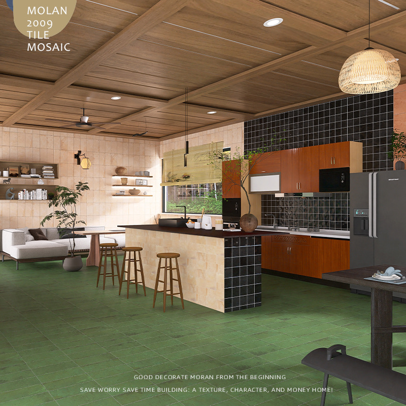 美式复古绿色莱姆石仿古砖民宿酒店庭院服装奶茶店地砖厨卫瓷砖