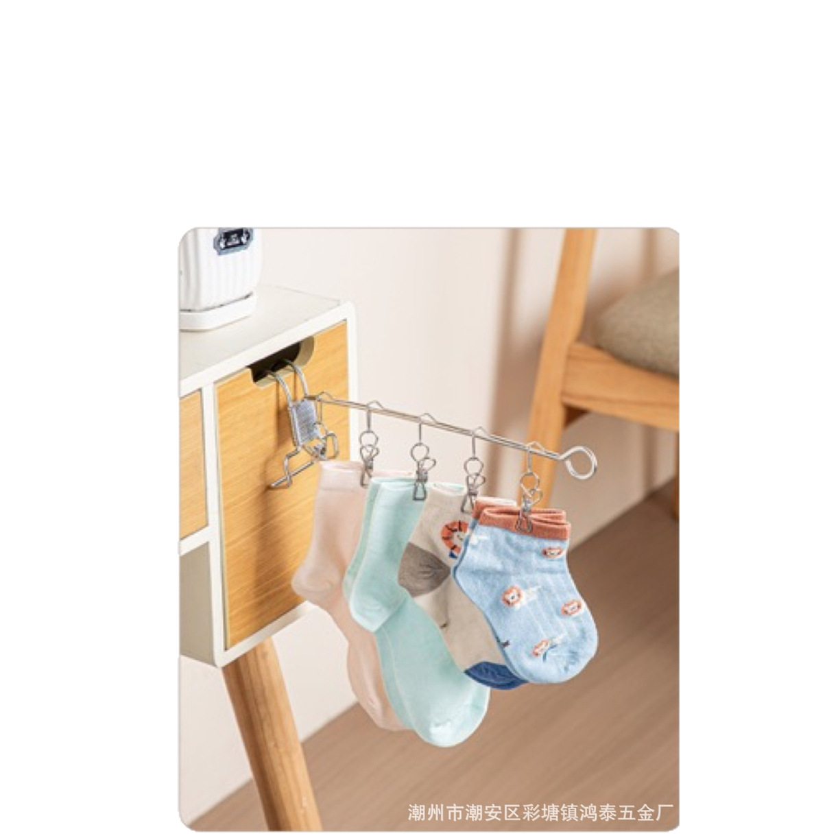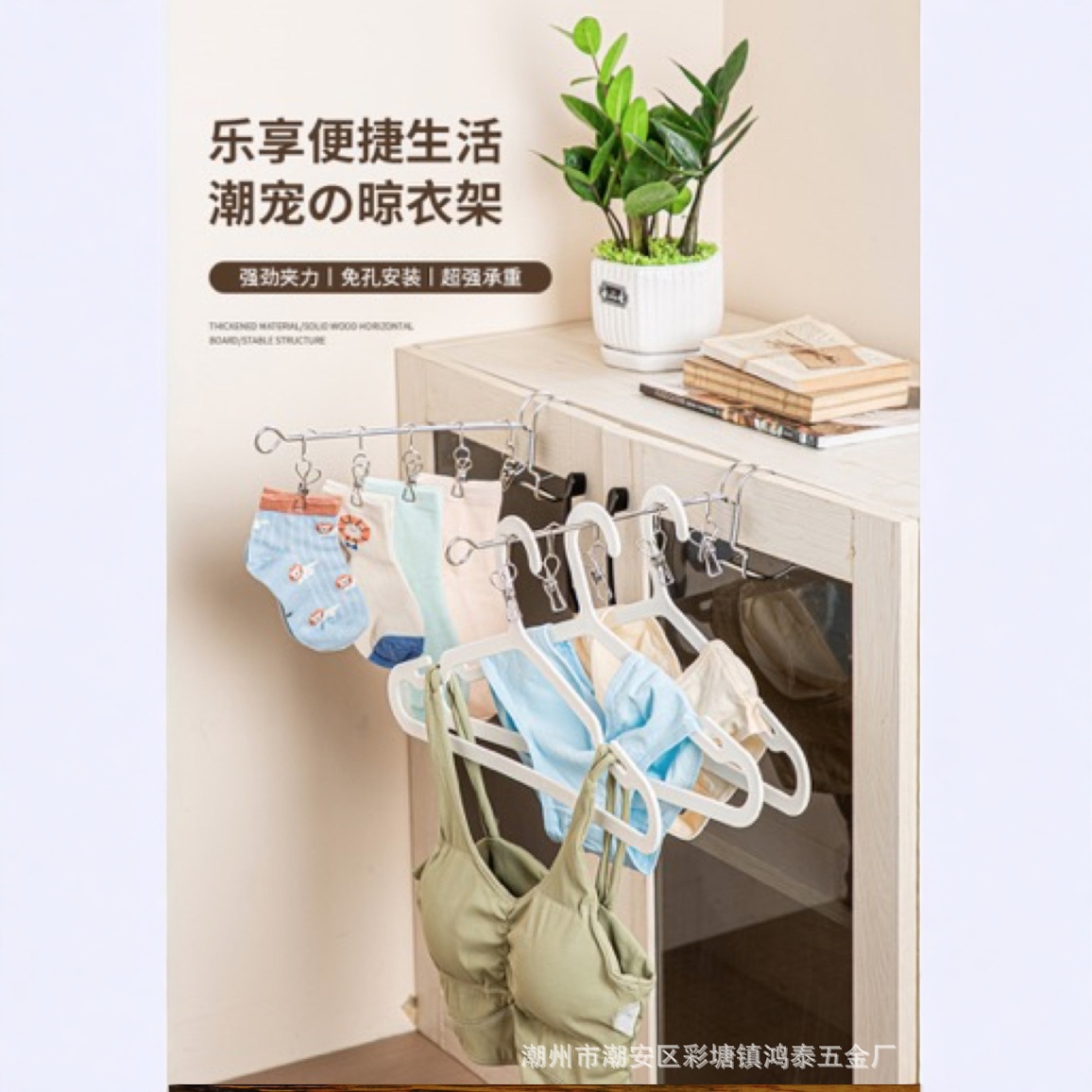 不锈钢加粗防风晾衣架夹子双钩晒袜架多功能免打孔宿舍神器晒鞋夹