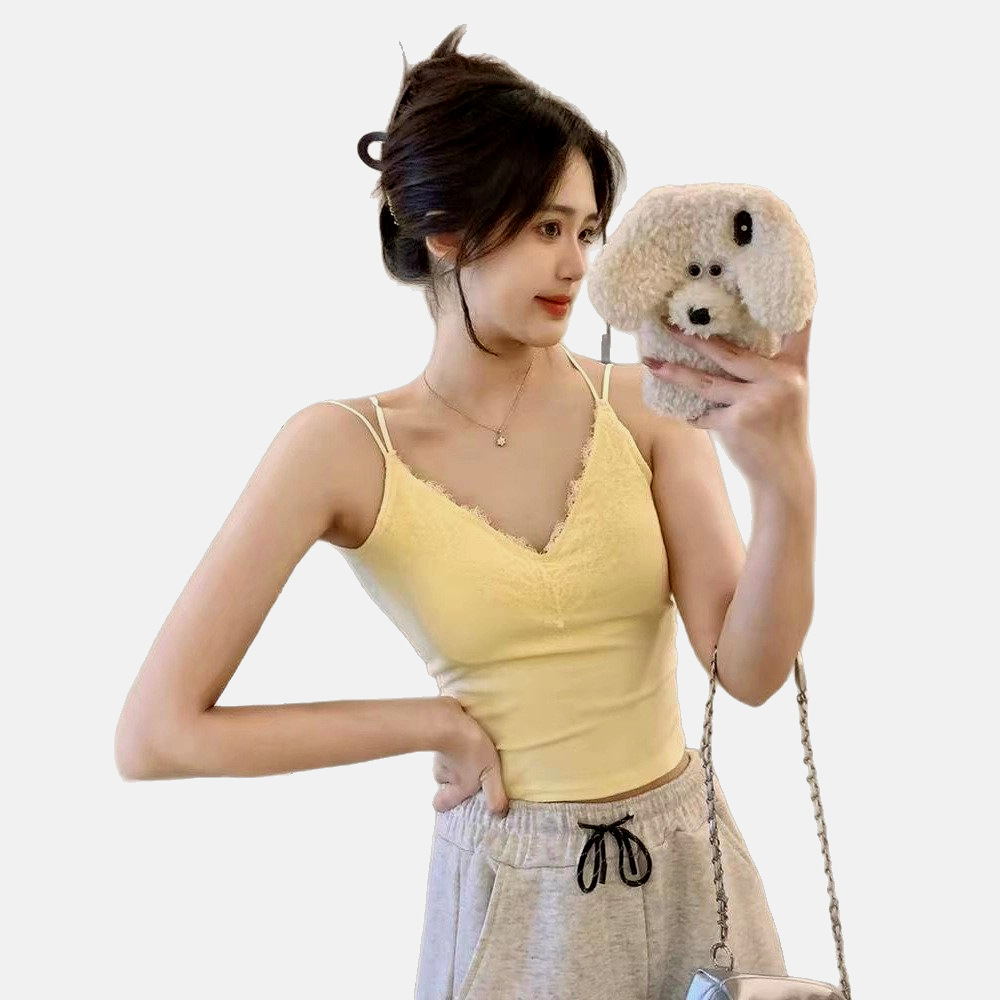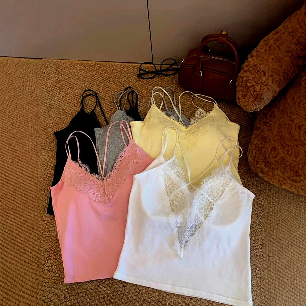 白色蕾丝美背吊带女带胸垫外穿打底性感修身纯欲内搭显瘦辣妹上衣