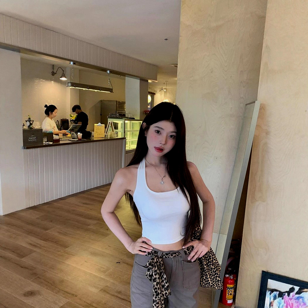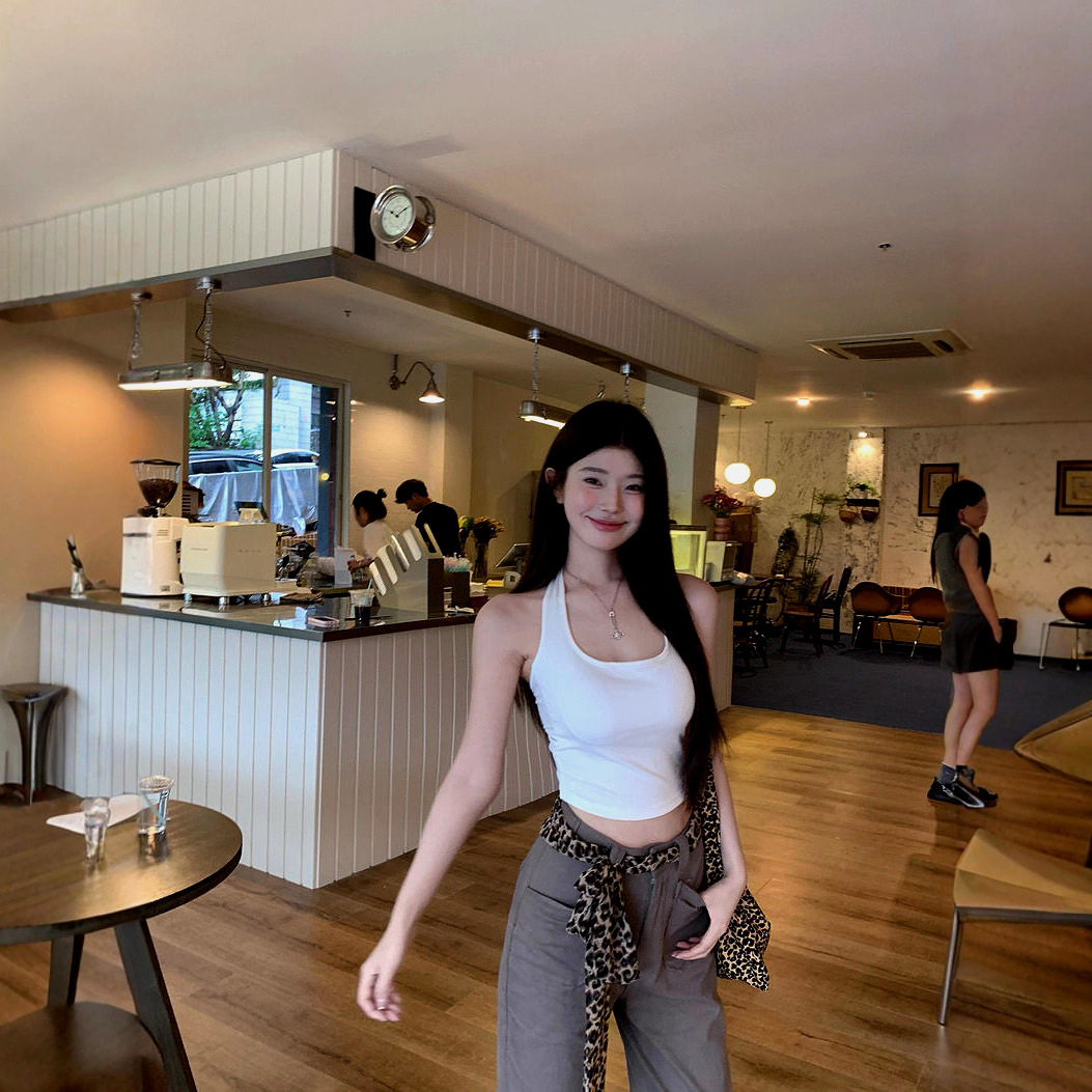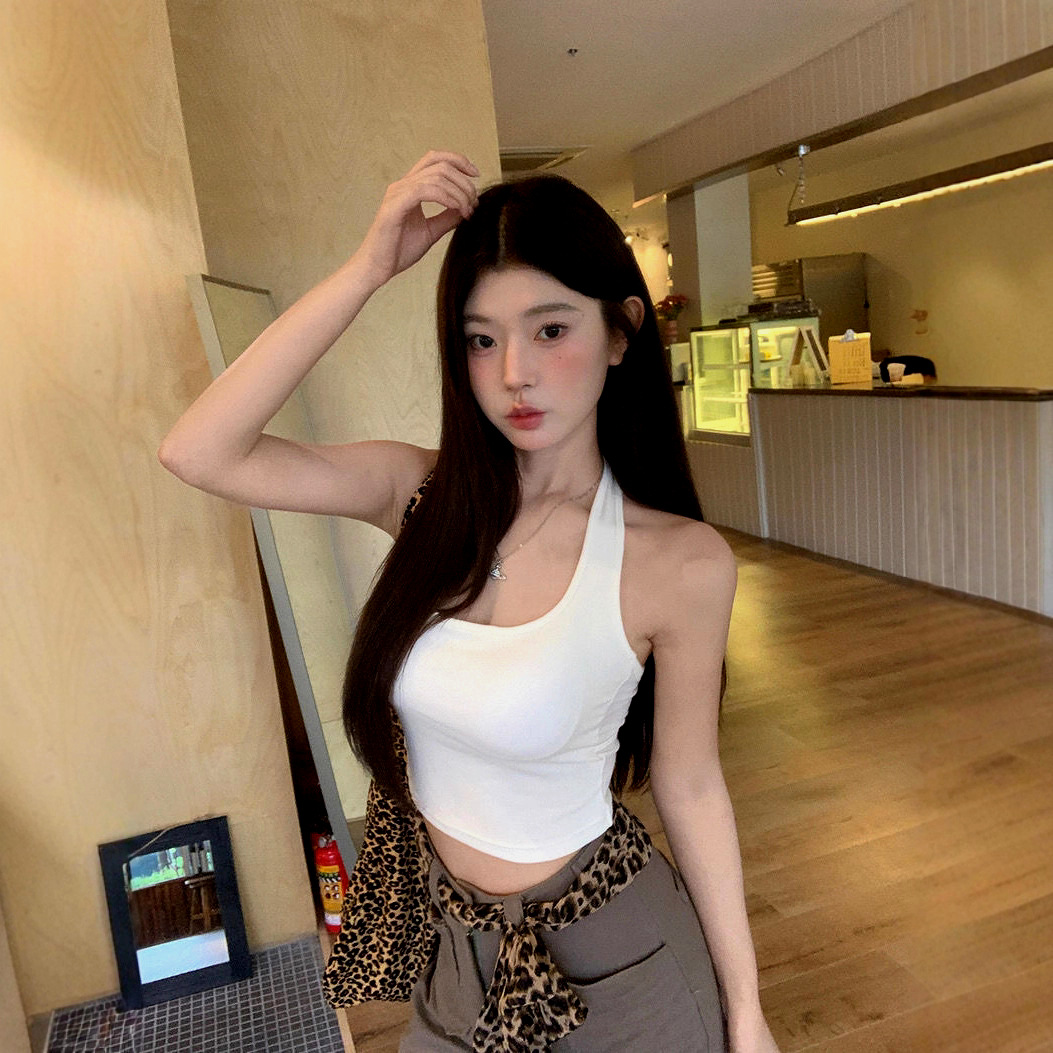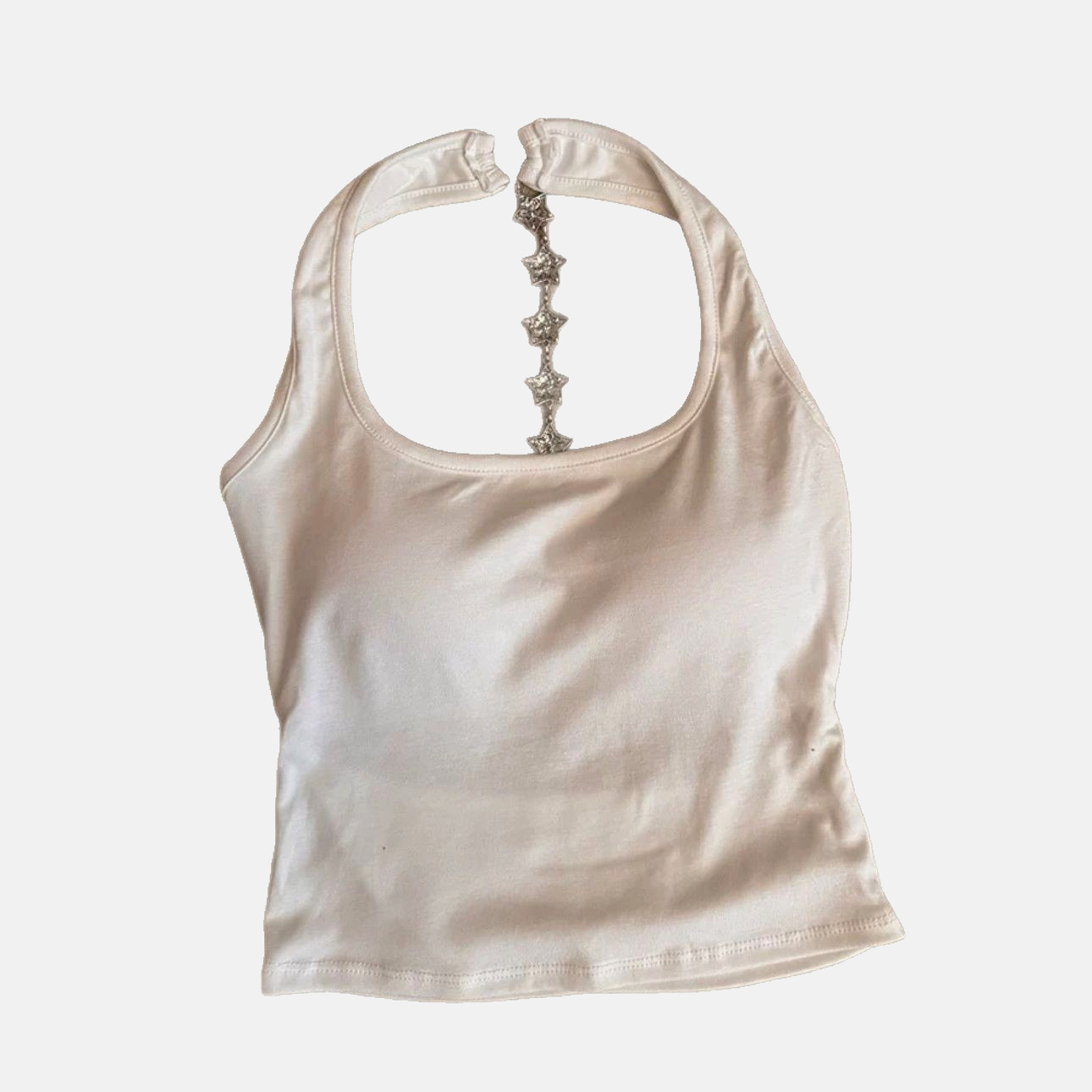纯欲辣妹星星链条露背白色吊带美背带胸垫性感挂脖外穿短款上衣女