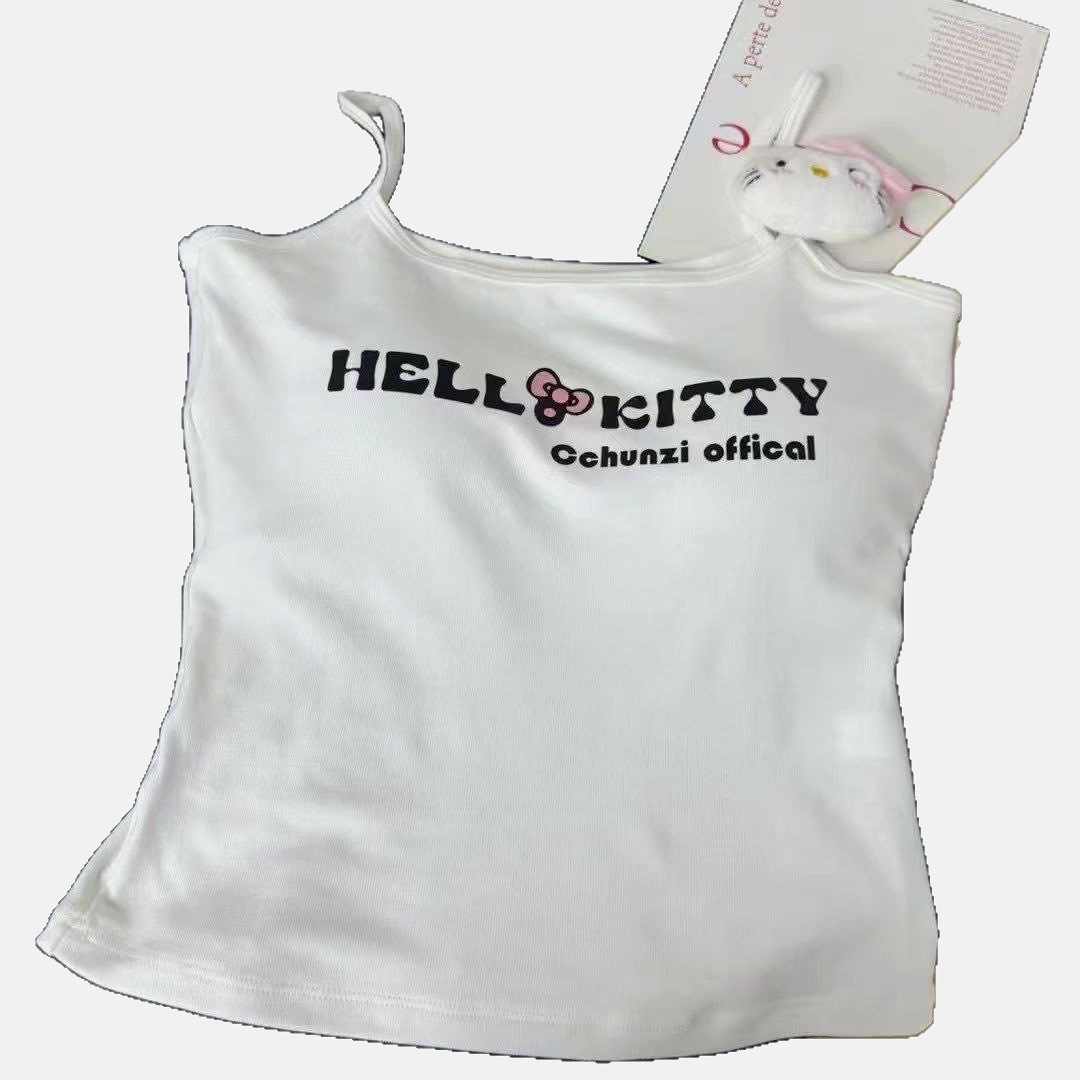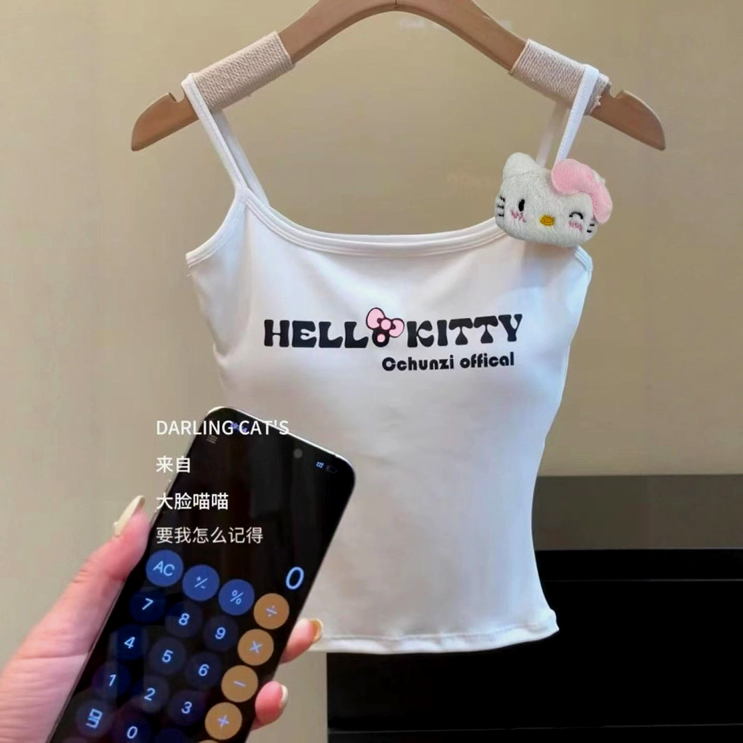 可爱风字母印花KT猫纯欲吊带背心女带胸垫夏季新款修身显瘦上衣女