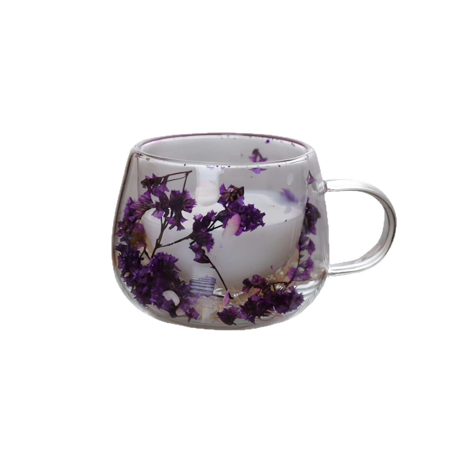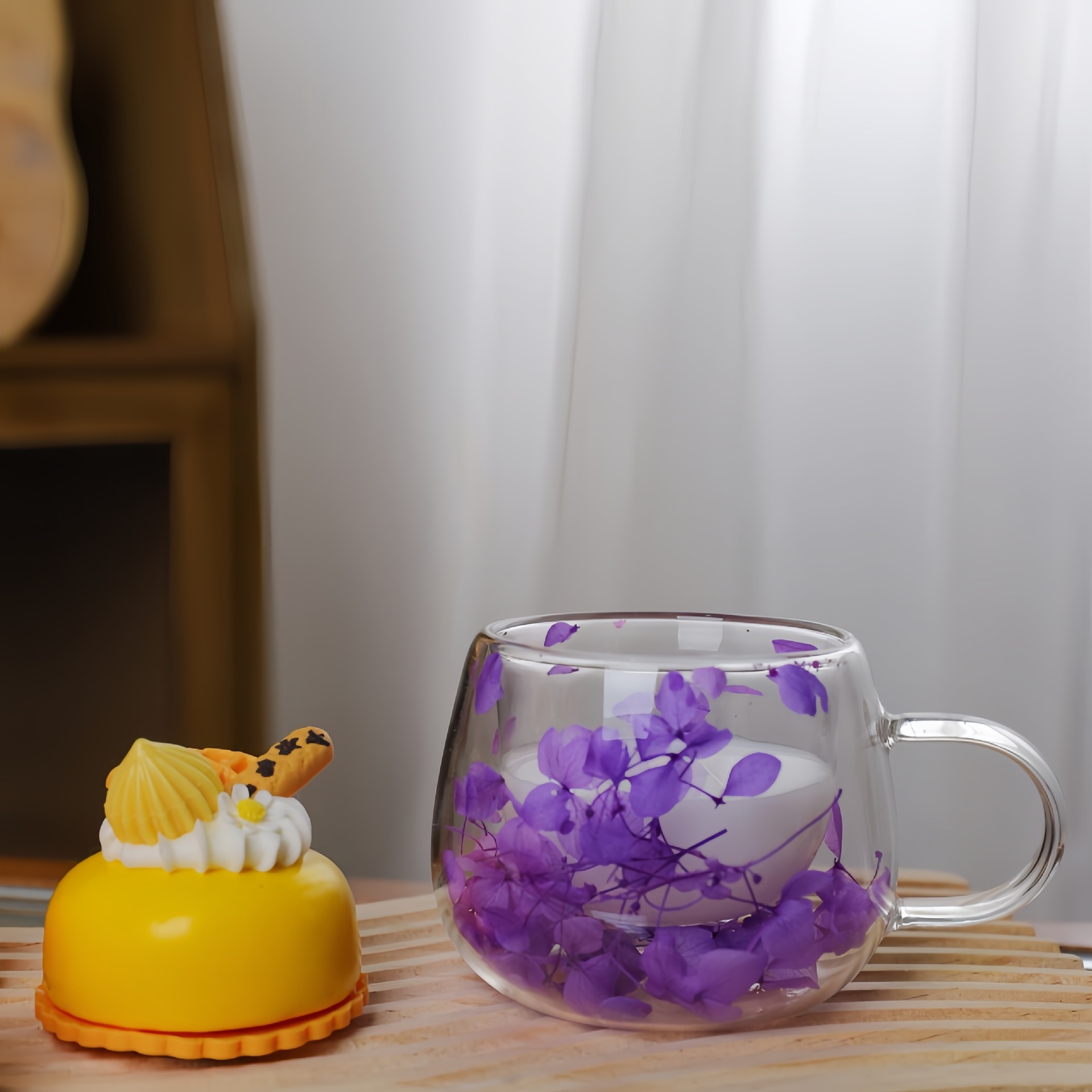 高颜值双层隔热干花杯 简约家用果汁饮料牛奶杯 高硼硅玻璃喝水杯