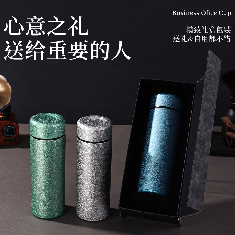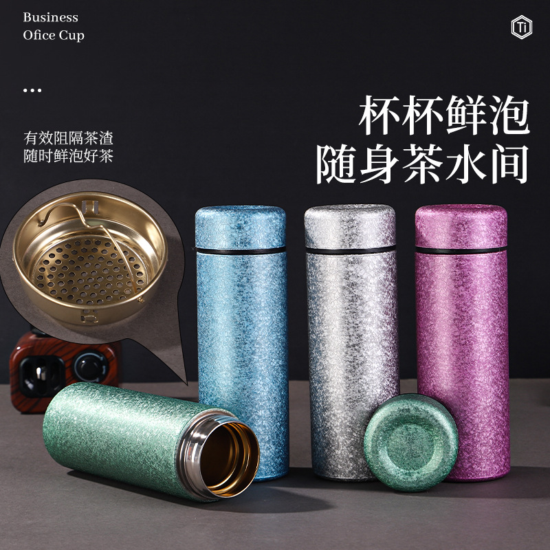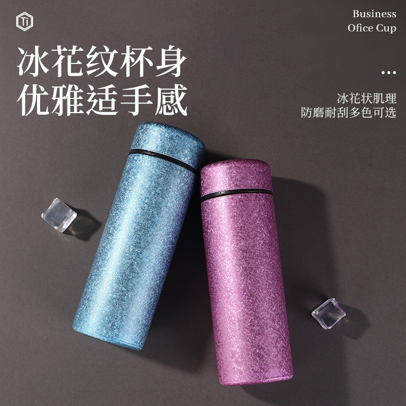 新款轻奢冰花钛杯女高颜值随行直身杯商务办公带茶隔覆钛保温杯