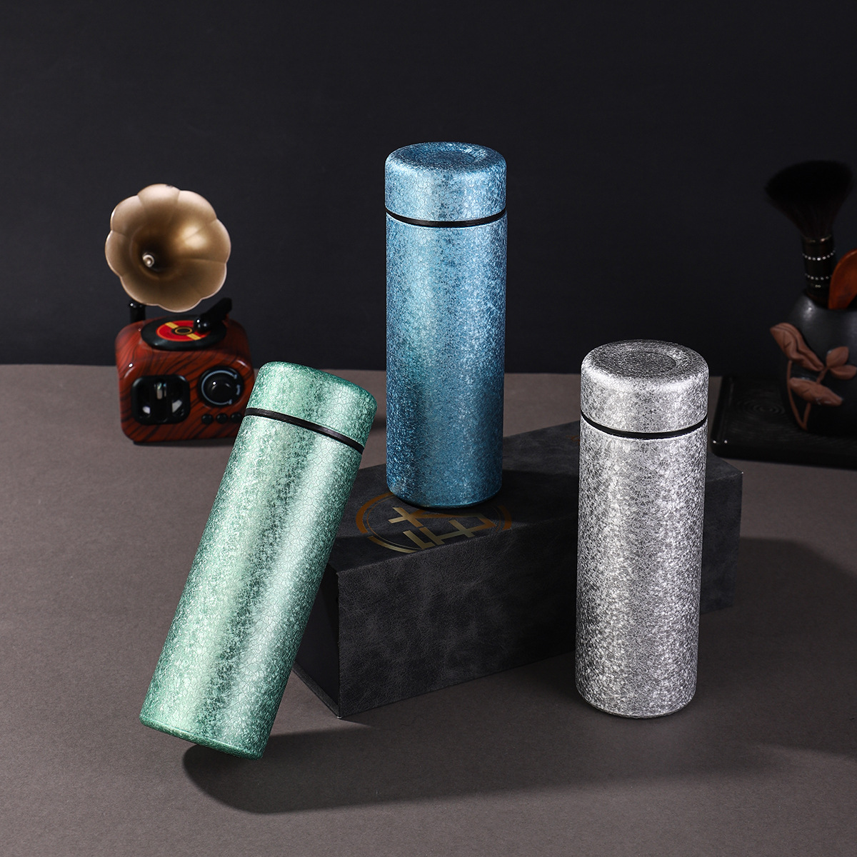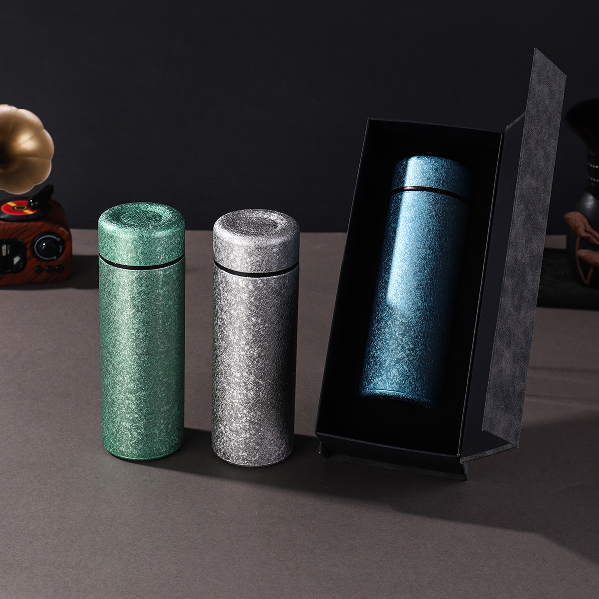 定制轻奢冰花钛杯女高颜值随行直身杯商务办公带茶隔覆钛保温杯