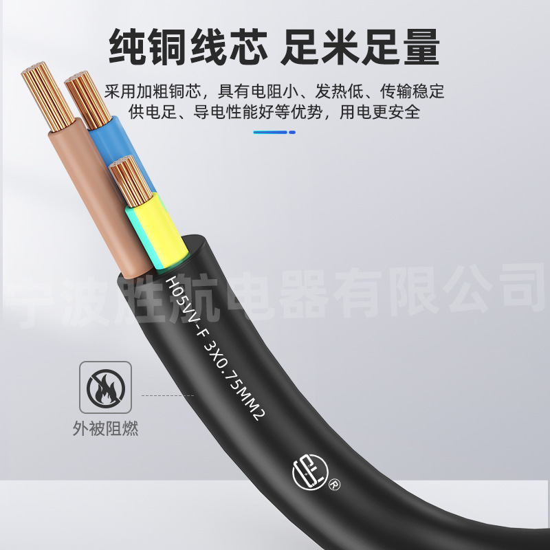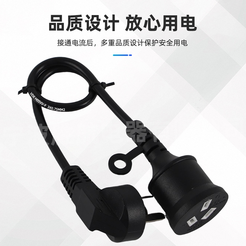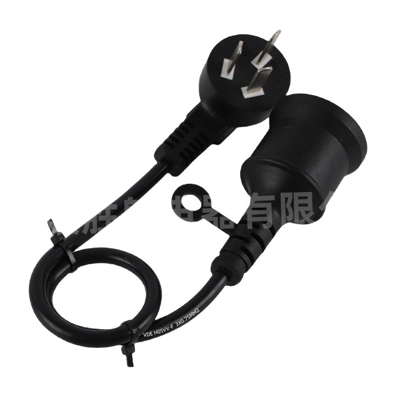 直销国标三扁插弯头电源线尾插3*0.75平方三插防水母头插座延长线