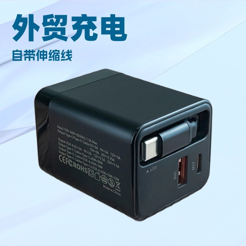 65W充电器自带type-c英规美规充电头快充适用安卓华为小米苹果16