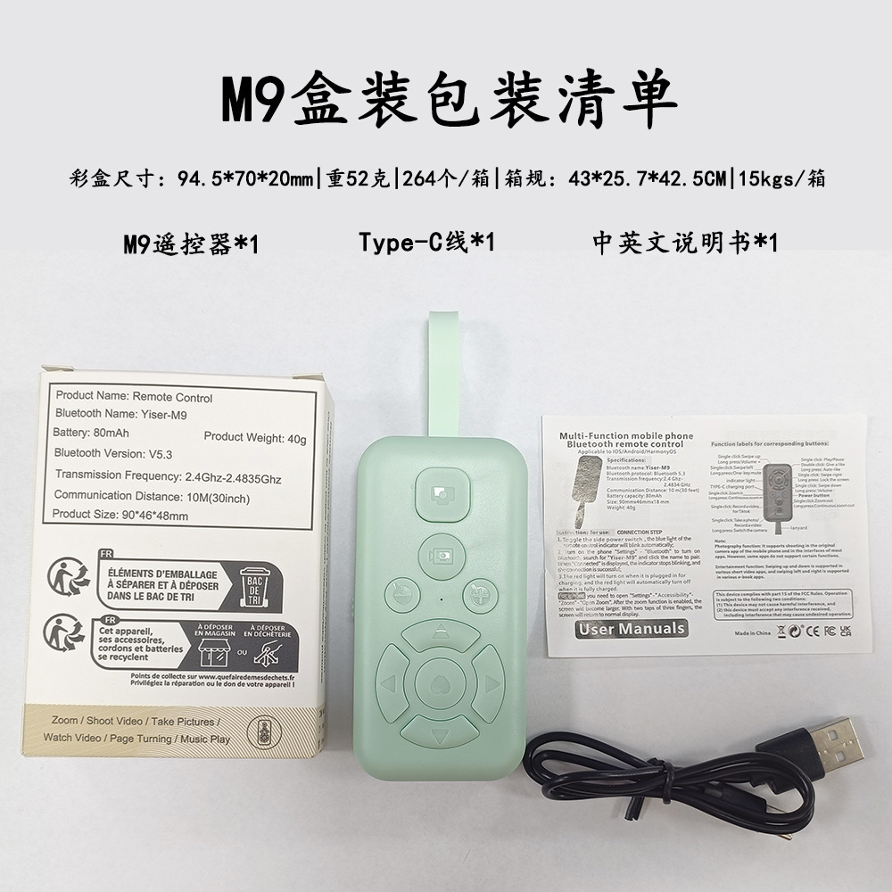 新款充电抖音九键遥控器蓝牙自拍器短视频快手遥控器拍摄手机拍照