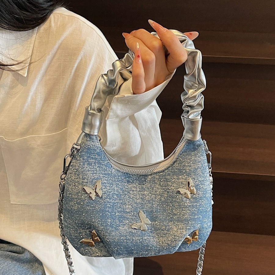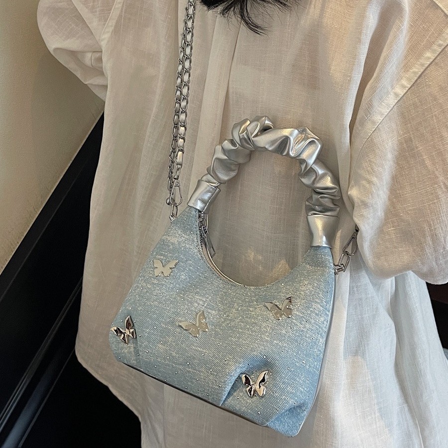 韩国质感小众银色包包女式2025新款夏季单肩斜挎包蝴蝶结腋下包潮