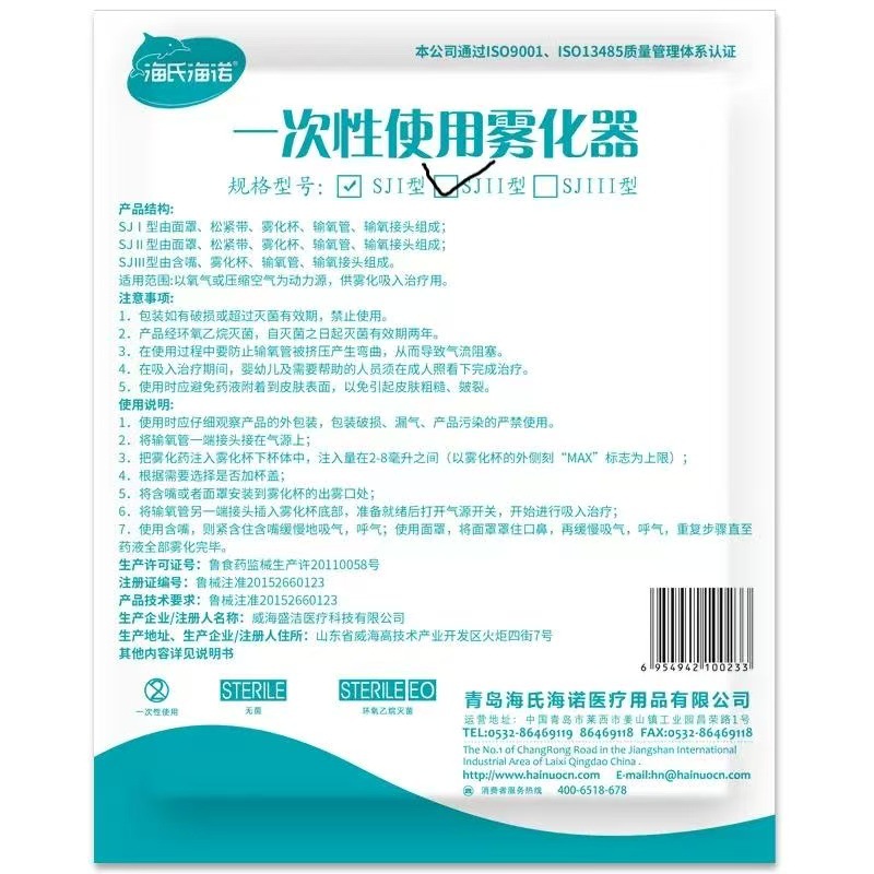 海氏海诺一次性使用雾化器面罩型成人儿童家用医用雾化面罩