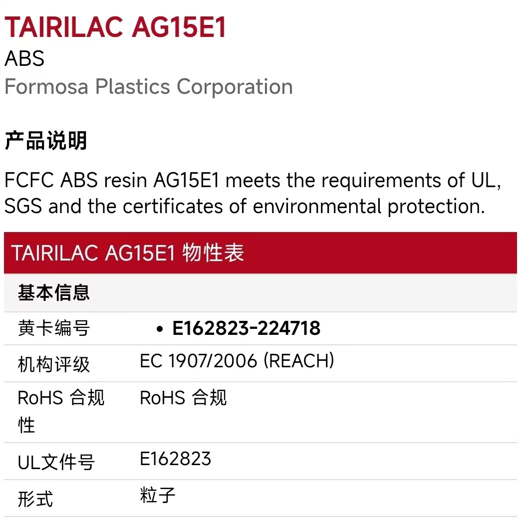 15e1颗粒ABS宁波台化AG15E1台化abs料15e1本色料abs塑料颗粒