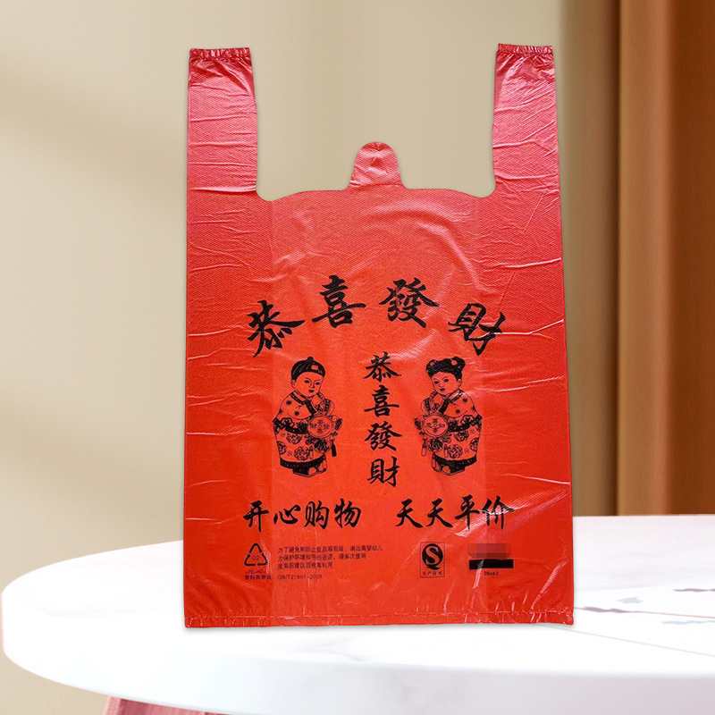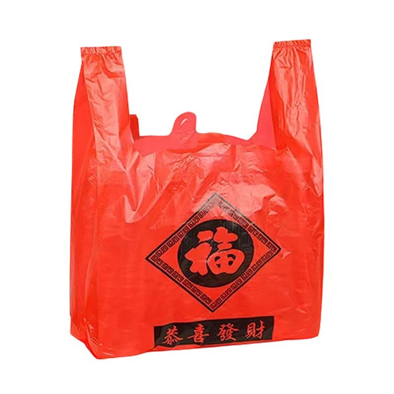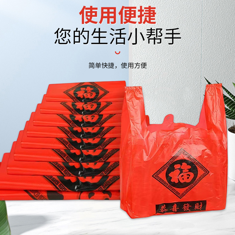 福字手提塑料袋打包超市背心购物袋喜庆礼品袋加厚通用包装背心式