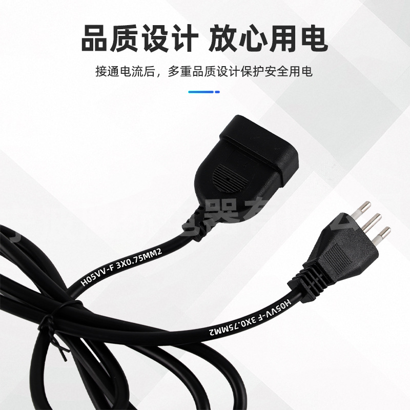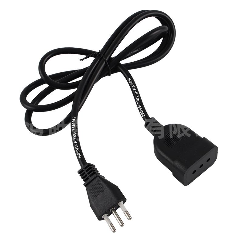 三芯意大利插头+尾插供应 3芯1平方尾部浸锡线 多用电源线插头