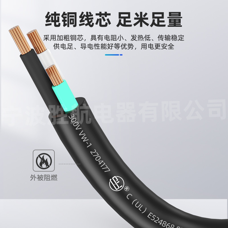 直销三芯美式弯头电源线 美标两扁一圆黑色插头线 家用电器橡胶线