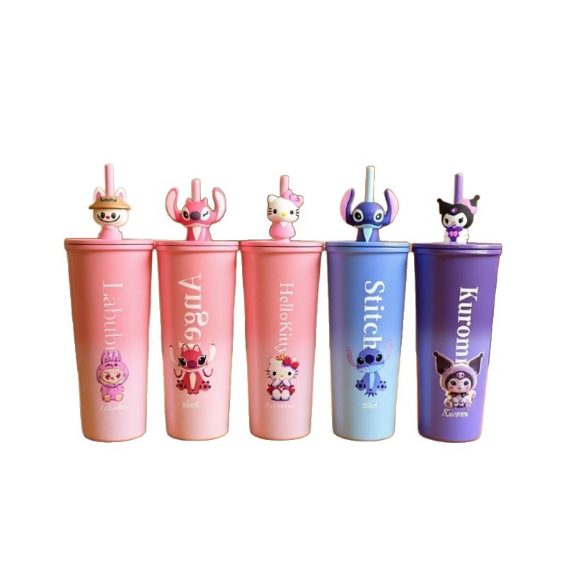 新款卡通图案保温杯304不锈钢双层真空女系2025高颜值公仔吸管杯