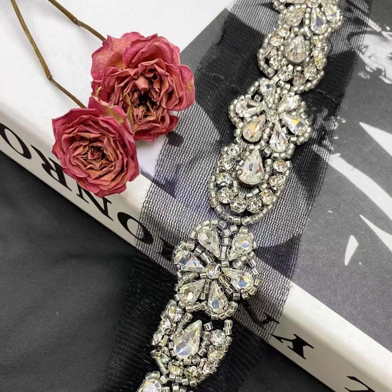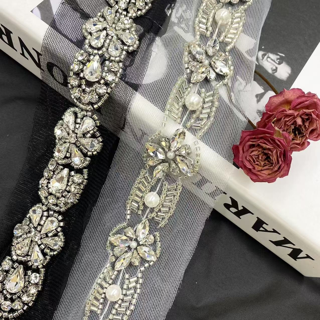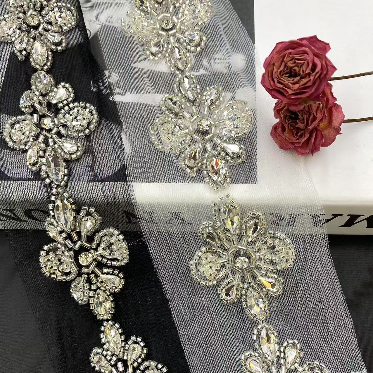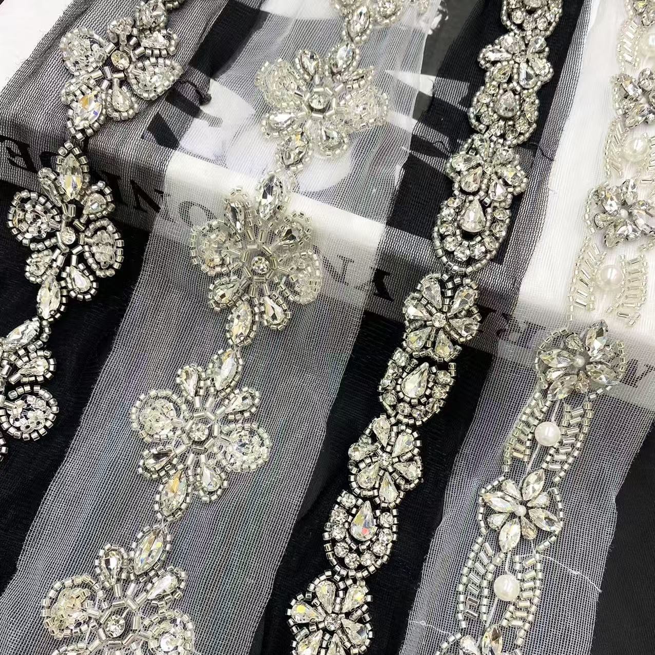 现货机绣米珠花边 手工钉珠珍珠水钻衣服装饰diy服装花边辅料蕾丝