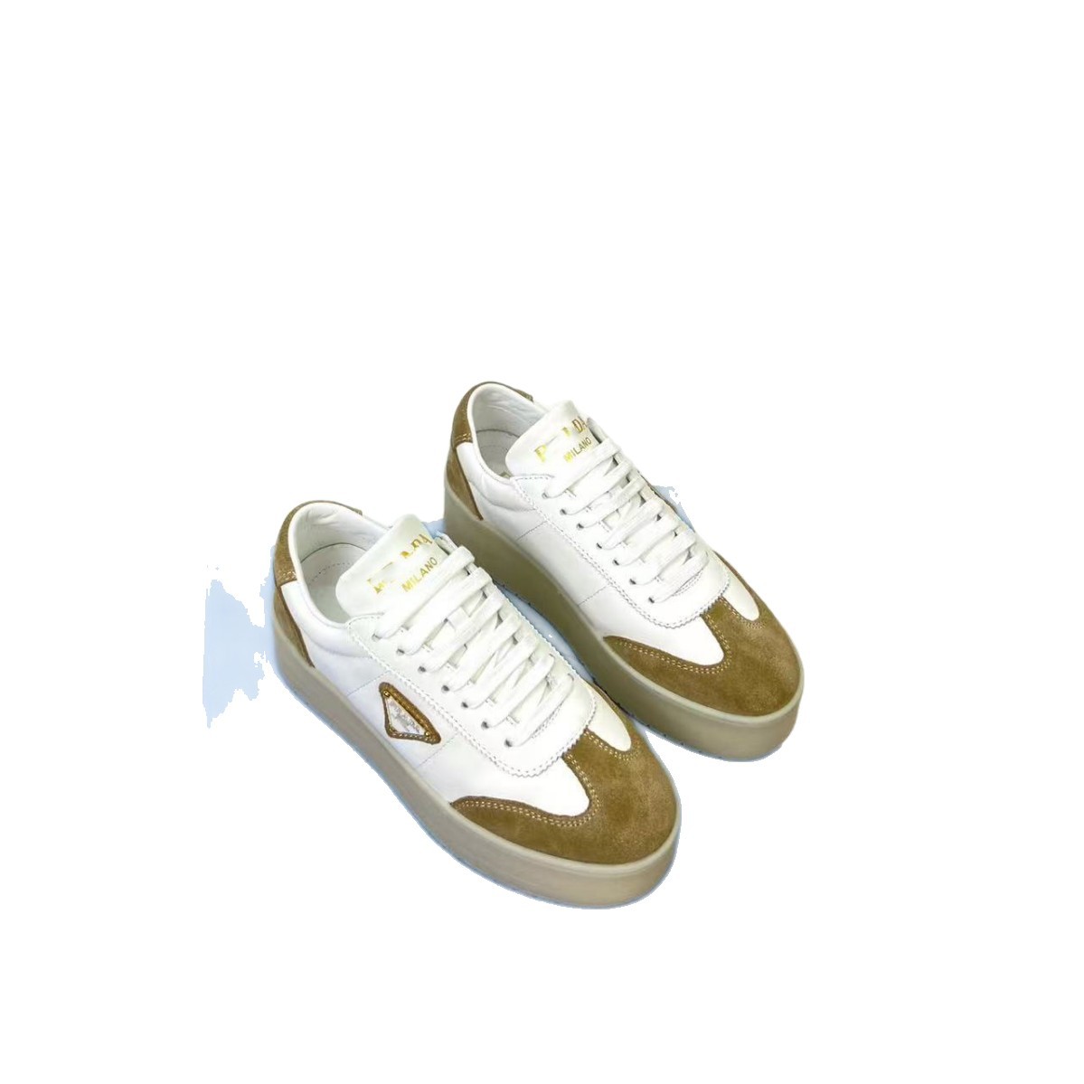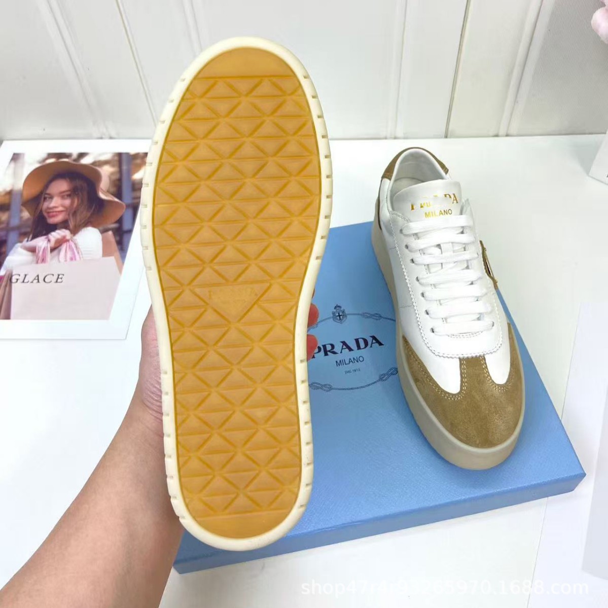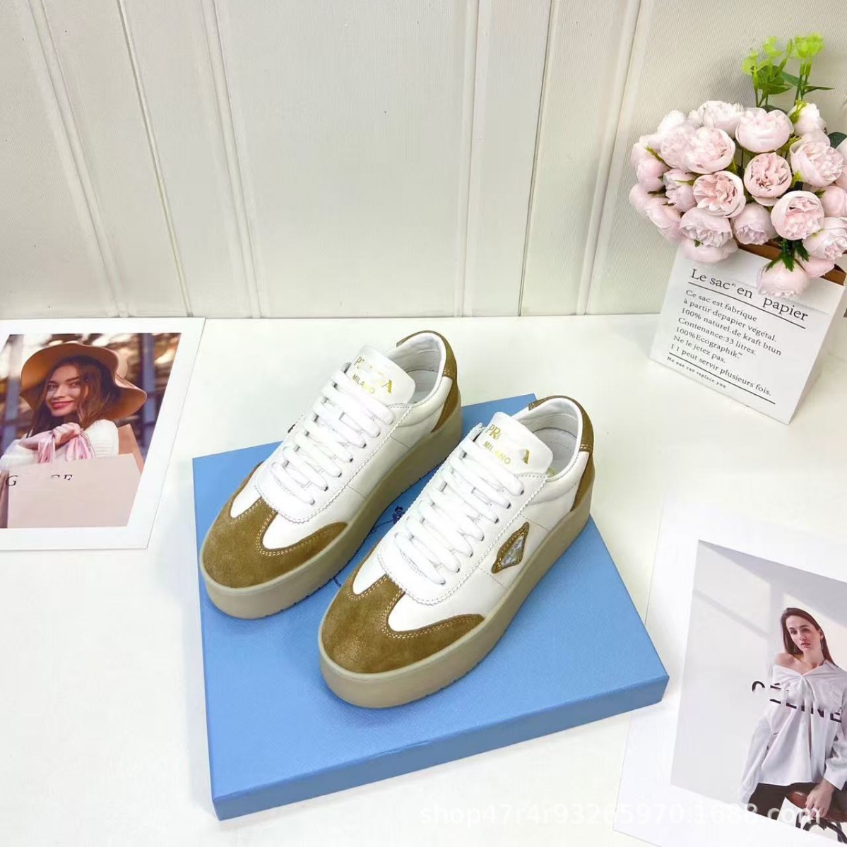 高版现货新款P家三角牌爆款松糕平底英伦低帮阿甘鞋舒适板鞋男