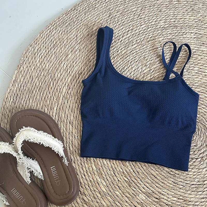欧美无缝U型纯色运动背心不对称肩带防震一体杯外穿健身美背文胸