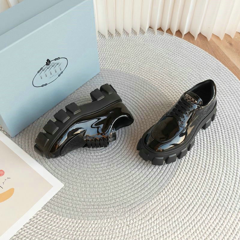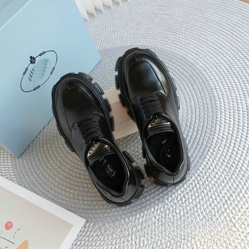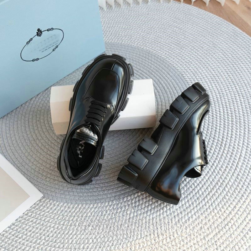代购级p家!外贸高端网红同款三角标齿轮厚底松糕鞋小皮鞋真皮女