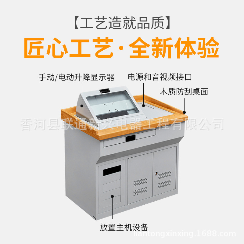 钢制多媒体讲台学校阶梯教室教育机构教学设备可调节屏幕升降讲桌