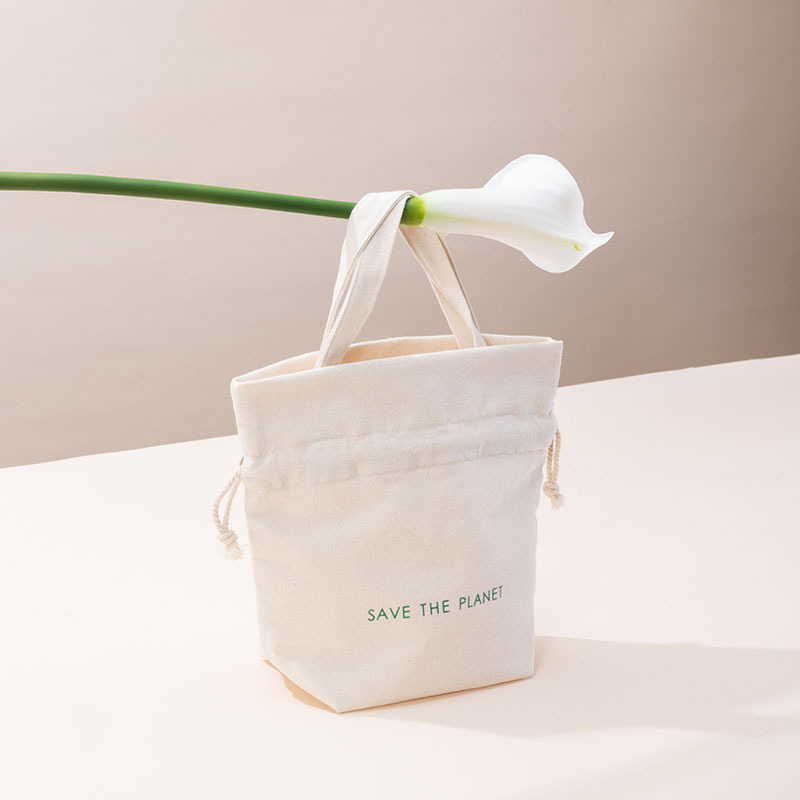 手提化妆包再生棉新款设计女生简约便携式棉布束口抽绳布袋定制