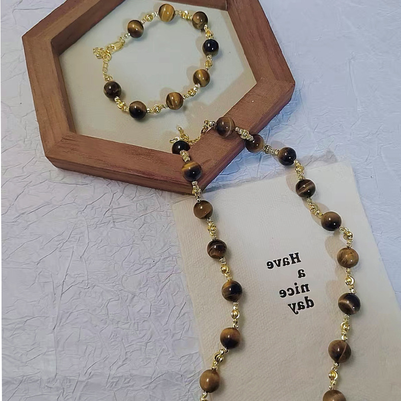 复古新款虎眼石贝珠项链手链设计感白水晶串珠珍珠百搭手串项链