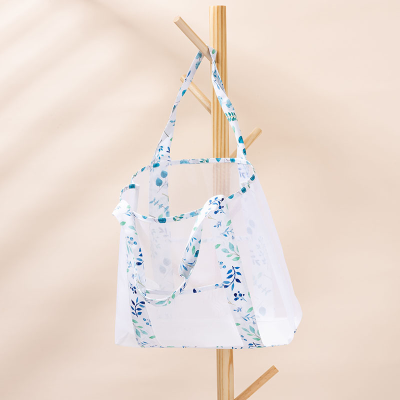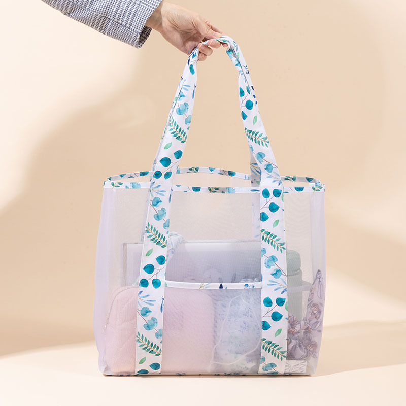 透明手提网料托特包大容量沙滩收纳包便携可折叠单肩包